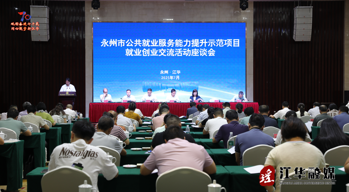 7月11日,永州市公共就业服务能力提升示范项目就业创业交流活动座谈会在江华召开。永州市人民政府副秘书长周涛,永州市人社局党组书记、局长、一级调研员骆方方,江华县委副书记、县长吴军臣,江华县委常委、常务副县长何开银等出席会议或参与现场观摩。