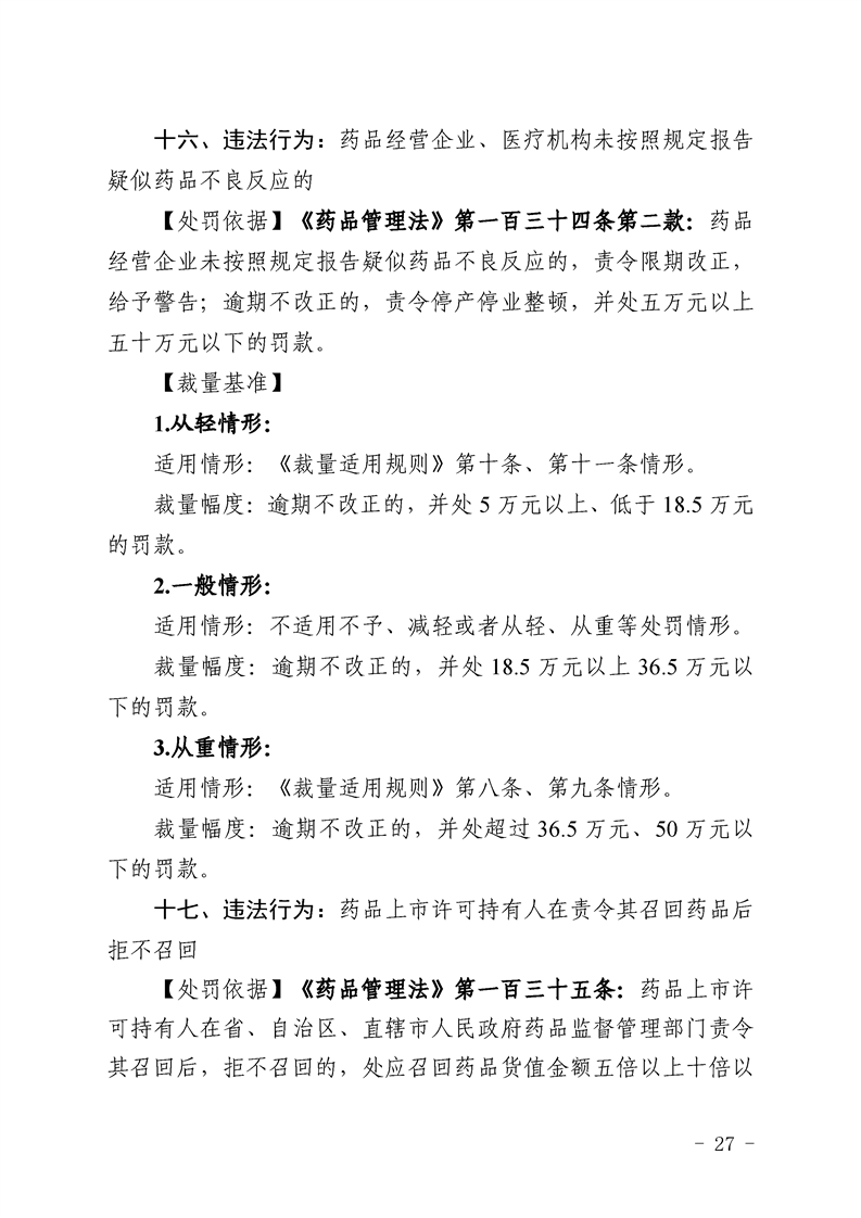 湖南省药品监督管理局关于印发《湖南省药品监督管理行政处罚裁量基准(试行)》的通知