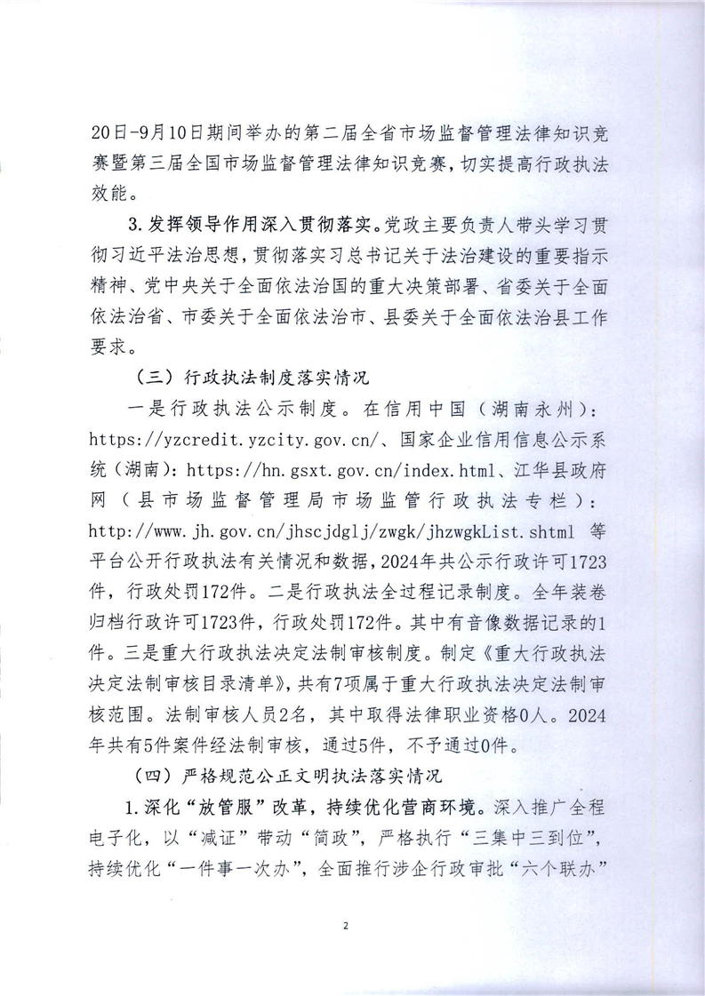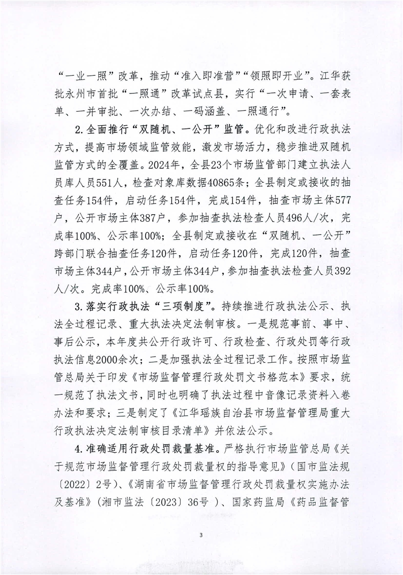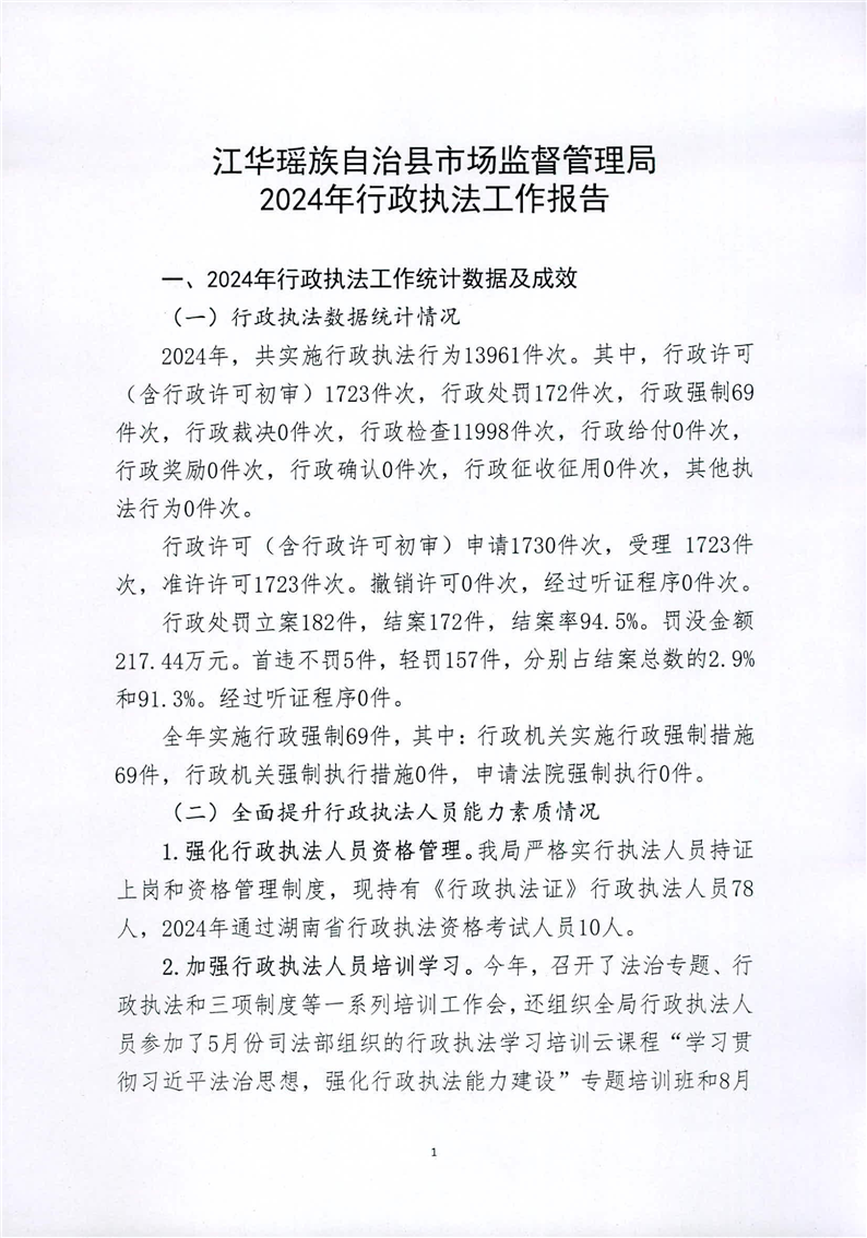 江华瑶族自治县市场监督管理局2024年行政执法工作报告