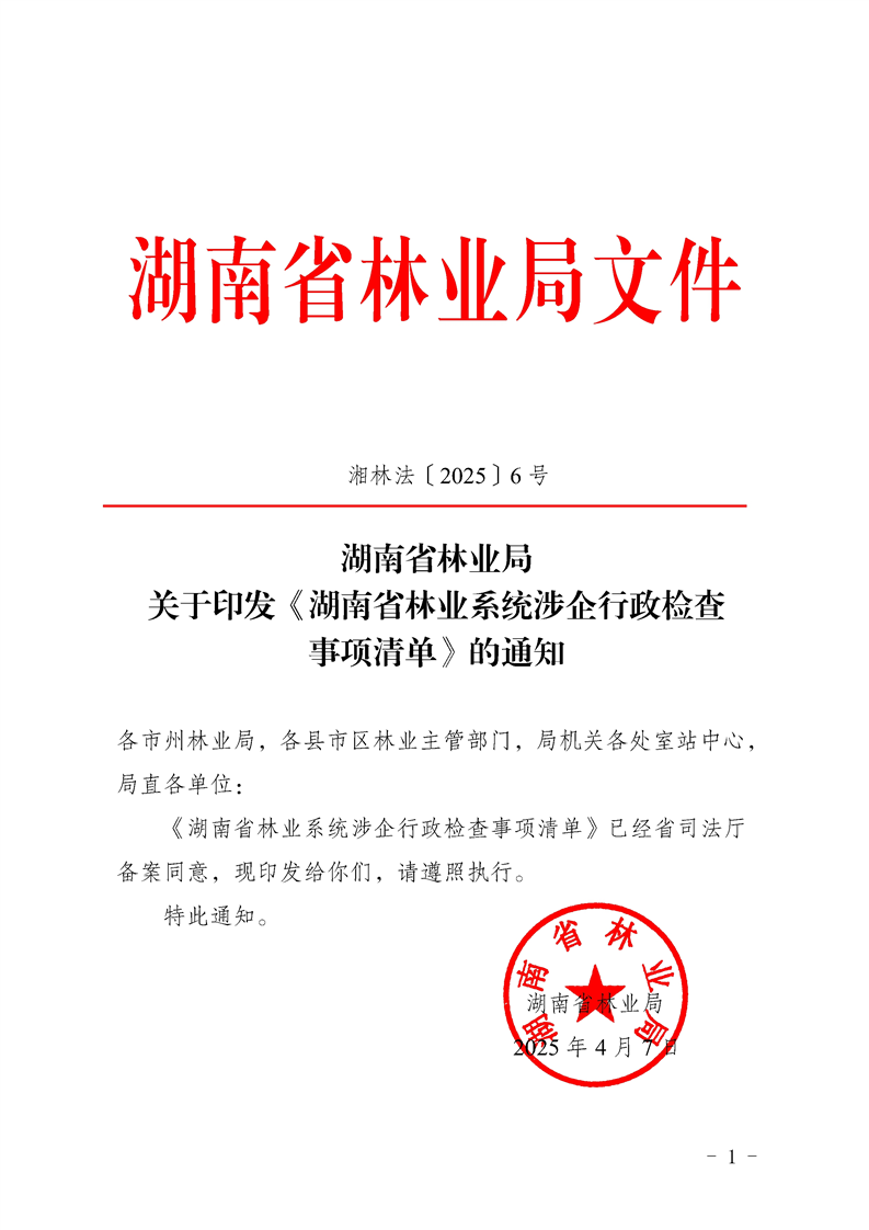江华瑶族自治县林业局关于转发《湖南省林业系统涉企行政检查事项清单》的通知