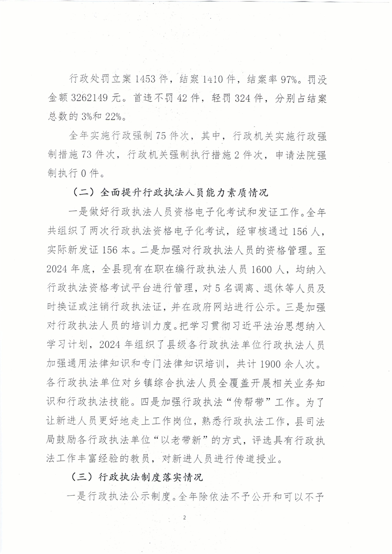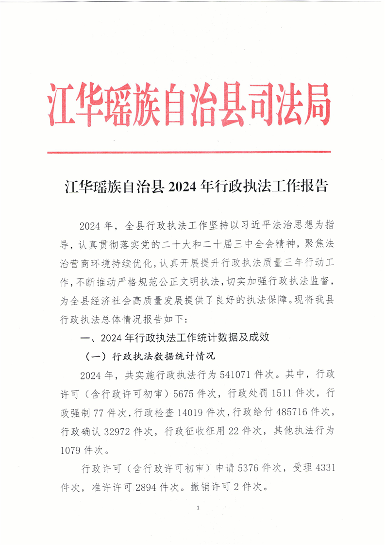江华瑶族自治县2024年行政执法工作报告