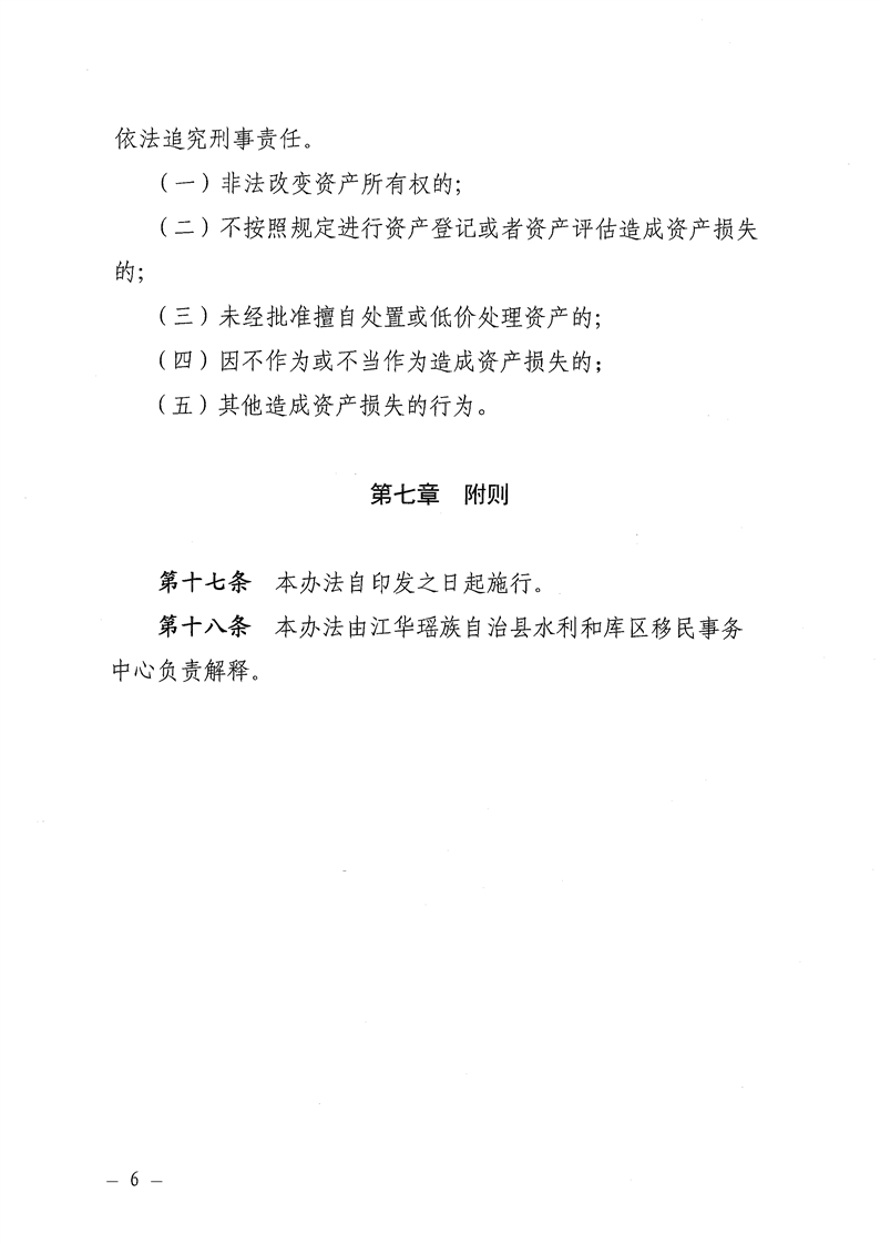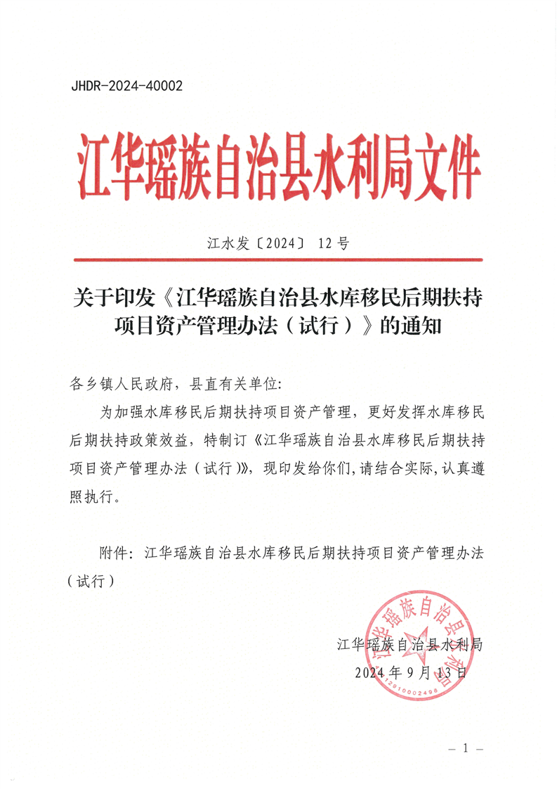关于印发《江华瑶族自治县水库移民后扶持项目资产管理办法(试行)》的通知