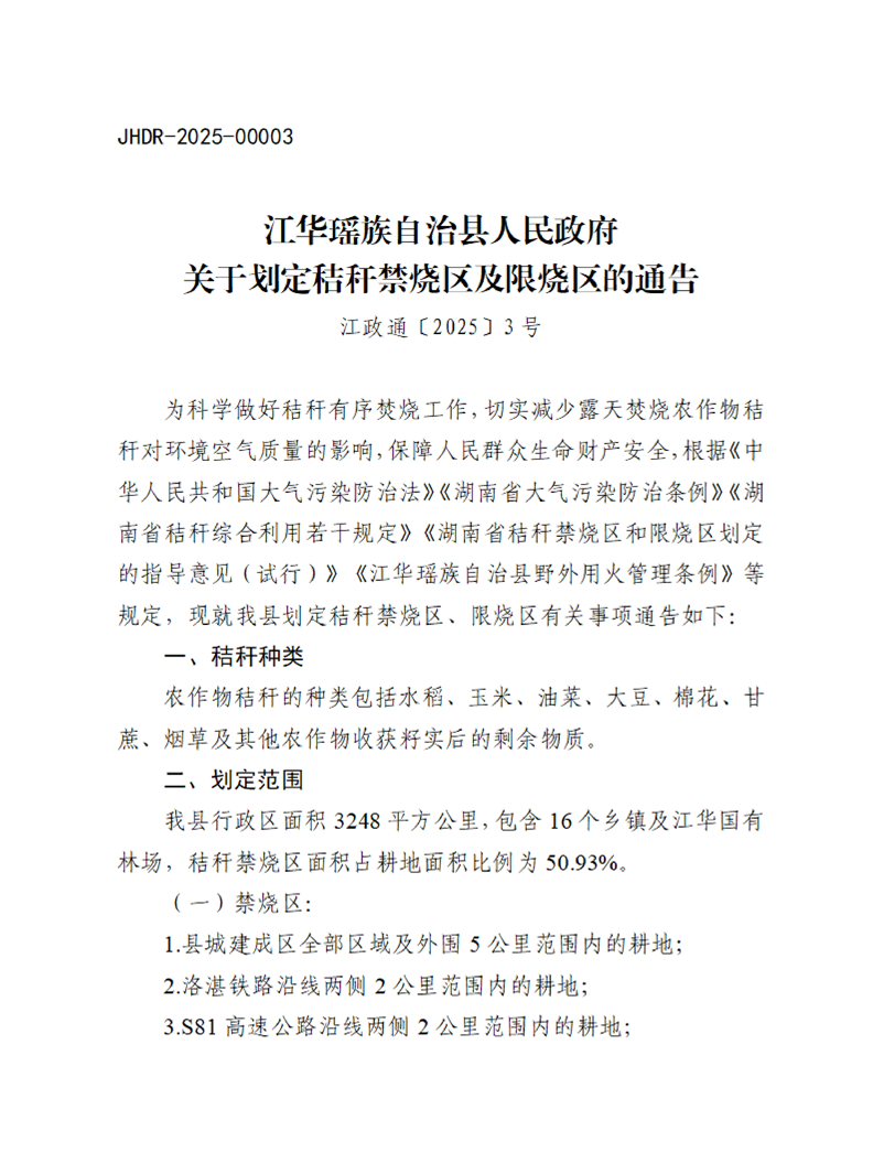 政策解读《江华瑶族自治县人民政府关于划定秸秆禁烧区及限烧区的通告》