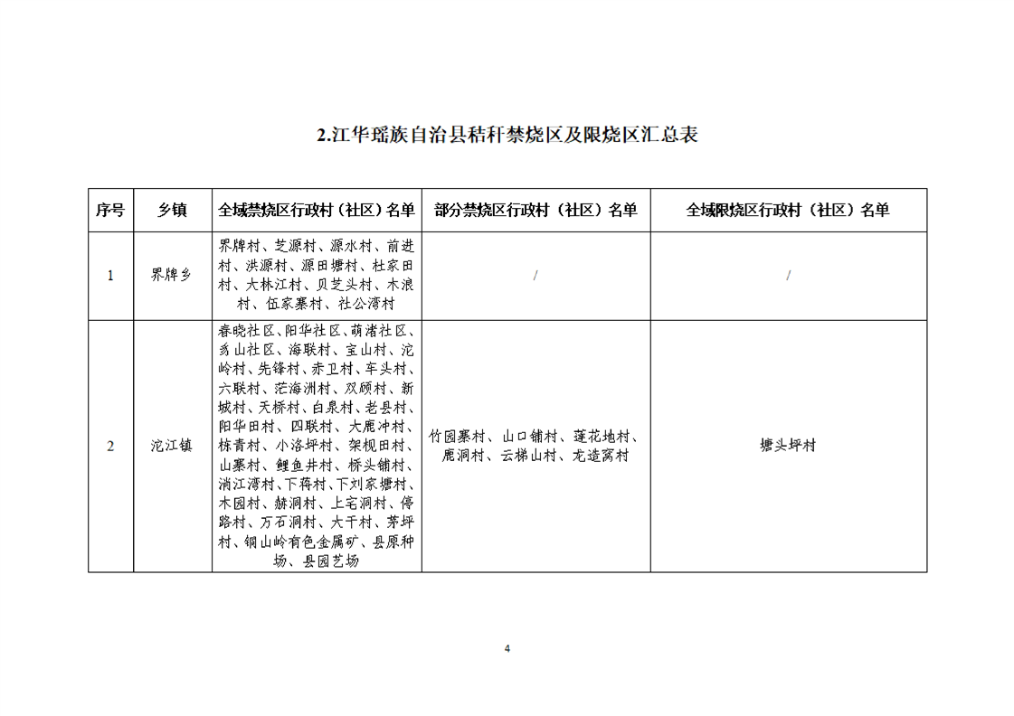 江华瑶族自治县人民政府关于划定秸秆禁烧区及限烧区的通告