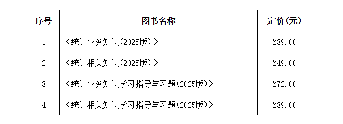 根据人力资源社会保障部日前通知,2025年统计师考试时间已确定为2025年10月19日。为适应统计理论实践与政策法规新发展新变化,全国统计专业技术资格考试用书编写组重新修订了考试用书。近日,考试用书已由中国统计出版社有限公司正式出版,其中《统计业务知识(2025版)》为初级统计专业技术资格考试用书,《统计业务知识(2025版)》和《统计相关知识(2025版)》为中级统计专业技术资格考试用书。