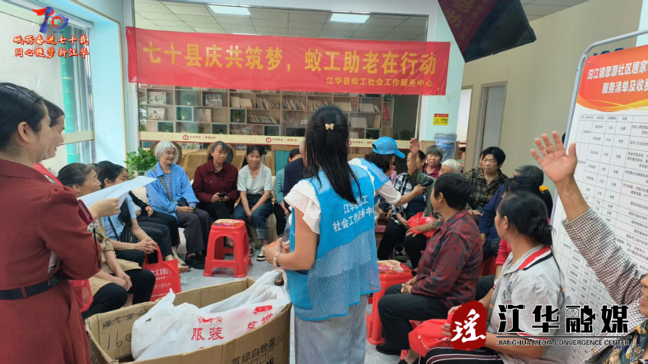 5月27日上午,在江华民政局的指导下,沱江镇政府的支持下,江华蚁工社会工作服务中心组织开展了“七十县庆共筑梦 蚁工助老在行动”,在思源社区居家养老活动中心为60余位老人送去关怀。