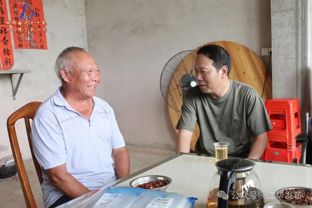 在塘头坪村,段贵建先后走访了监测户蒋兴辉、蒋兴湘和脱贫户蒋兴明,详细询问他们的健康状况、子女教育、就业收入、政策落实及帮扶成效。对患有多种慢性病的蒋兴辉,驻村工作队为其提供了村保洁员公益性岗位,协助家庭成员申请了困难学生生活补助和助学贷款,并将全家纳入低保,成功化解致贫风险;肢体二级残疾的蒋兴湘在驻村工作队的帮助下,获得了产业分红、务工补贴、危房改造等多项保障,段贵建叮嘱他们要保重身体,相信今后的生活会越来越好。在脱贫户蒋兴明家中,段贵建耐心地讲解防溺水安全知识,提醒家长加强监护。