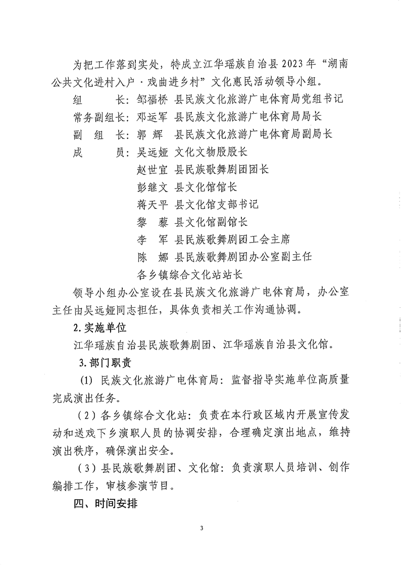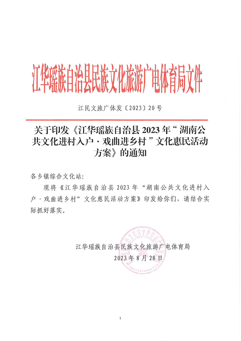 关于印发《江华瑶族自治县2023年“湖南公共文化进村入户·戏曲进乡村”文化惠民活动方案》的通知