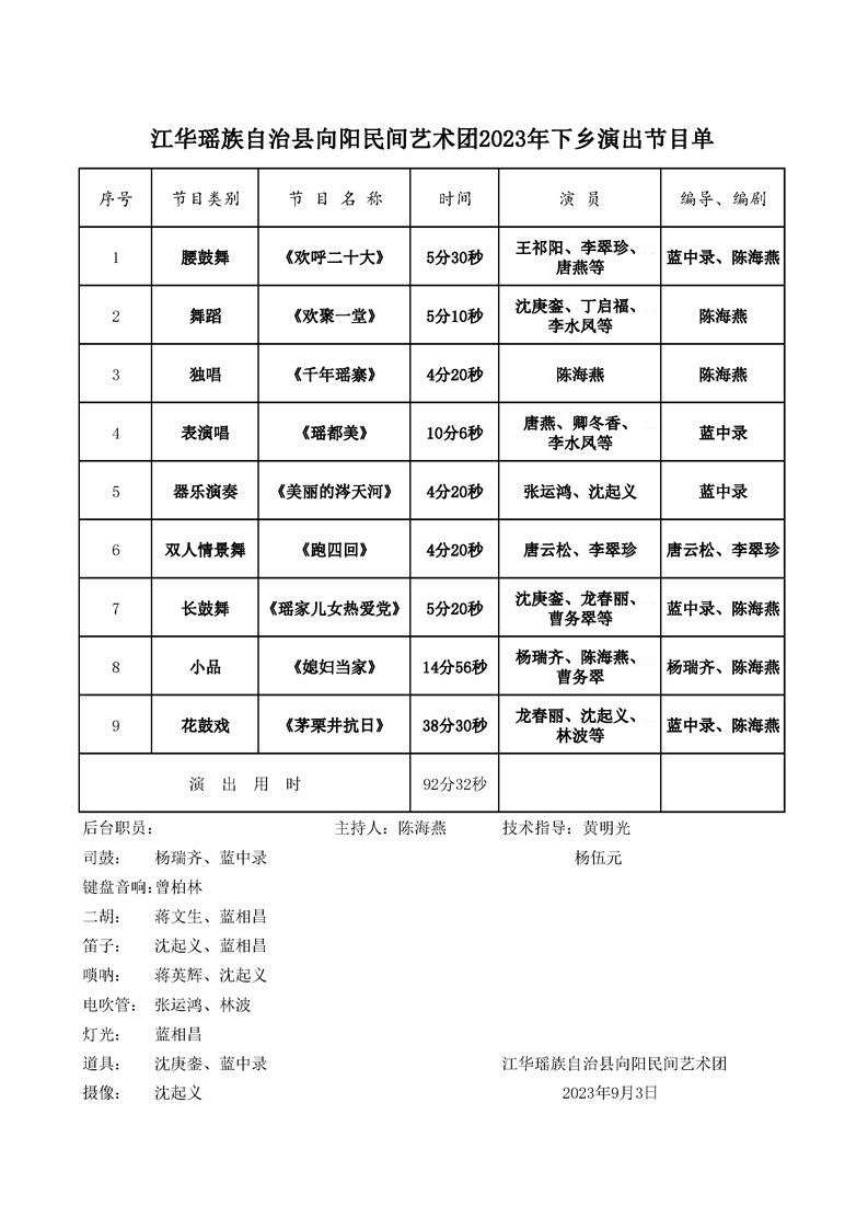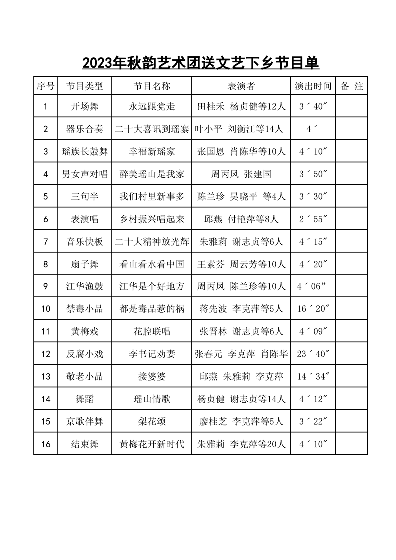 江华瑶族自治县2023年“湖南公共文化进村入户·戏曲进乡村”文化惠民活动节目演出单