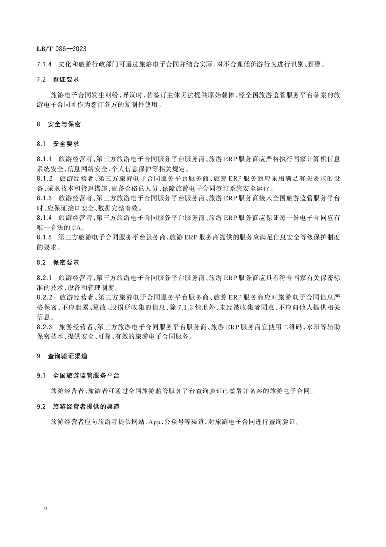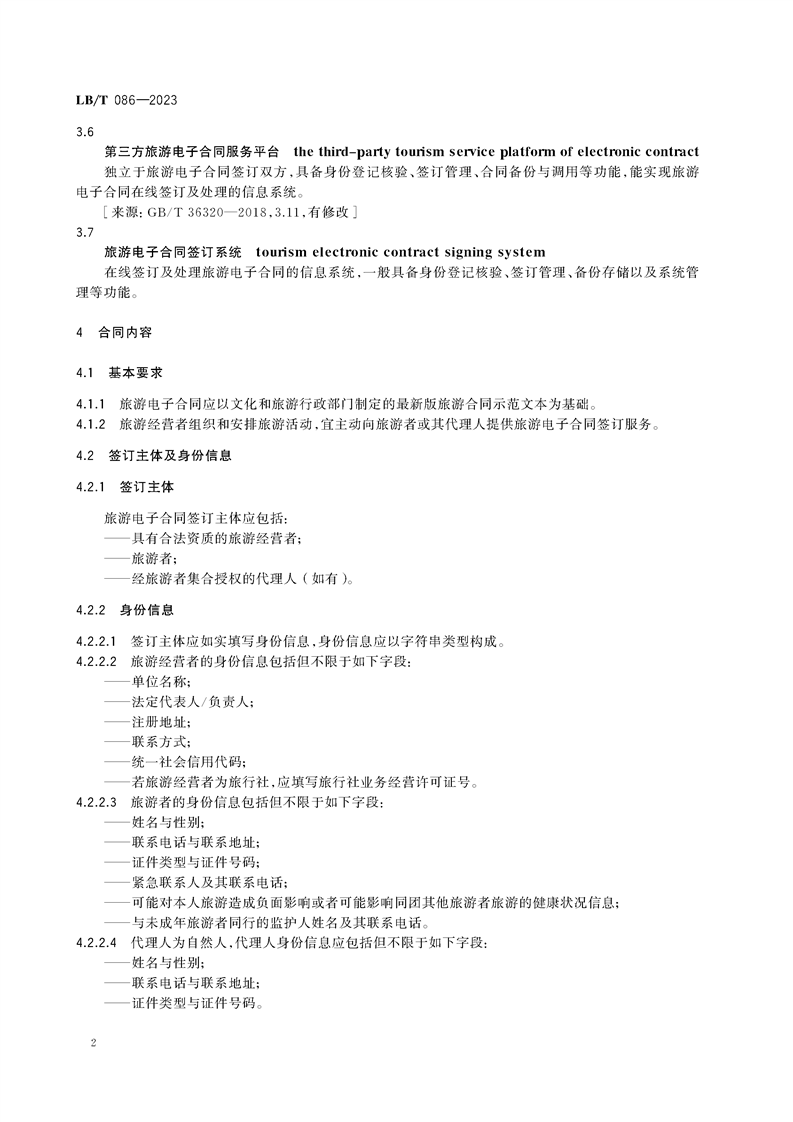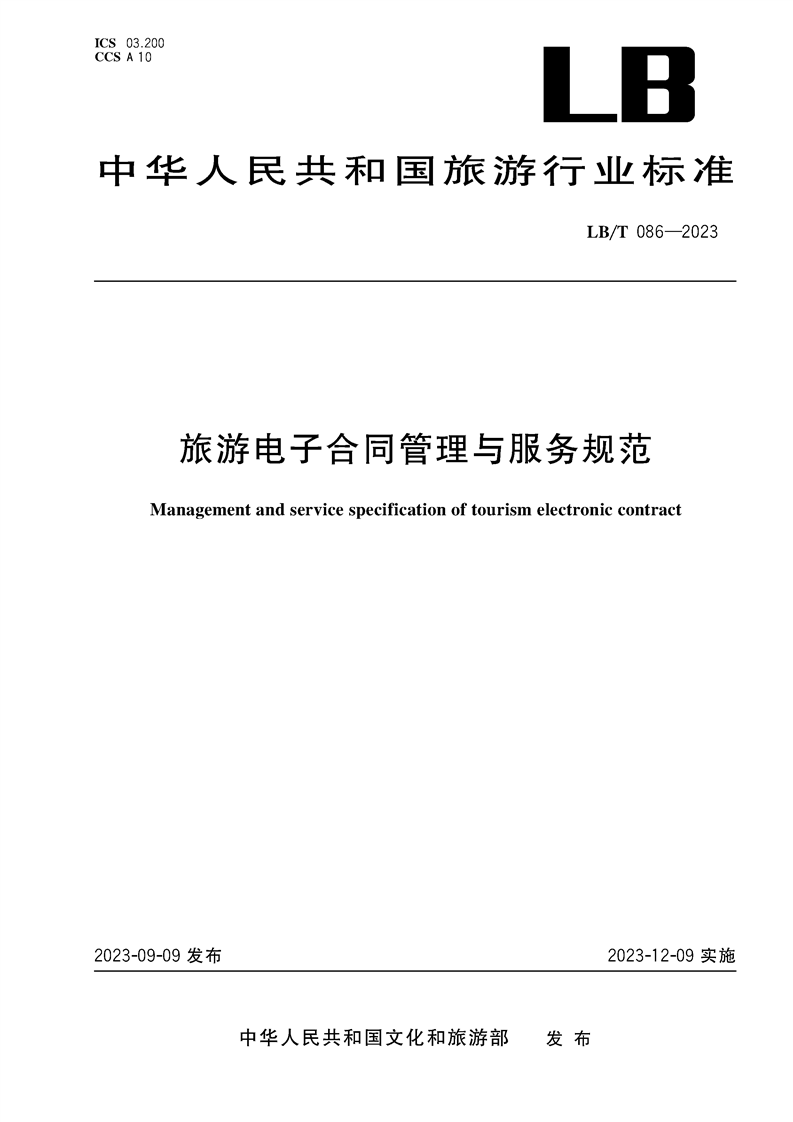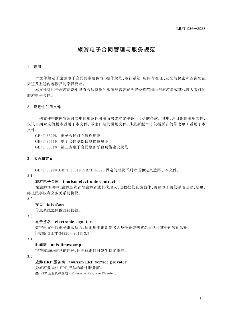 旅游行业标准 LB/T 086-2023 旅游电子合同管理与服务规范