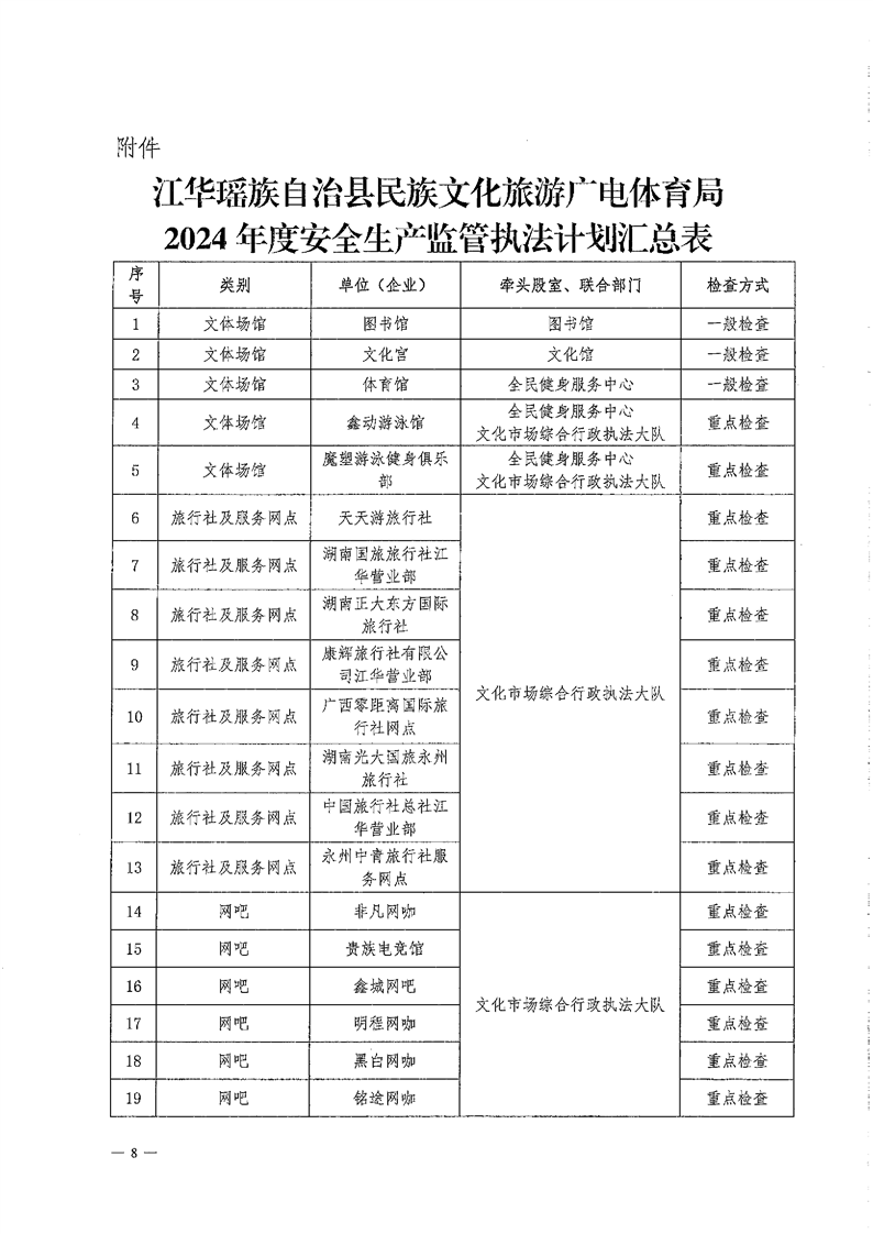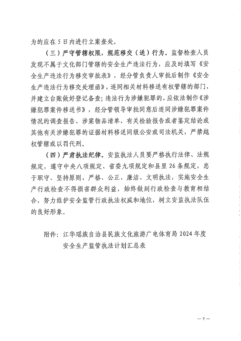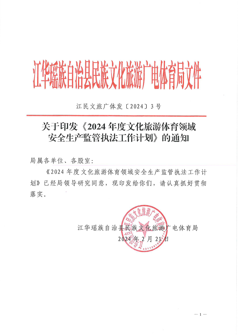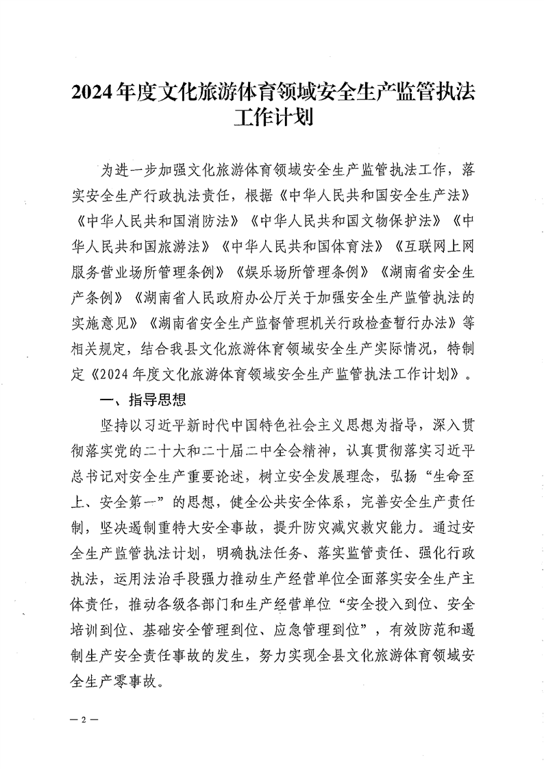 关于印发《2024年度文化旅游体育领域安全生产监管执法工作计划》的通知