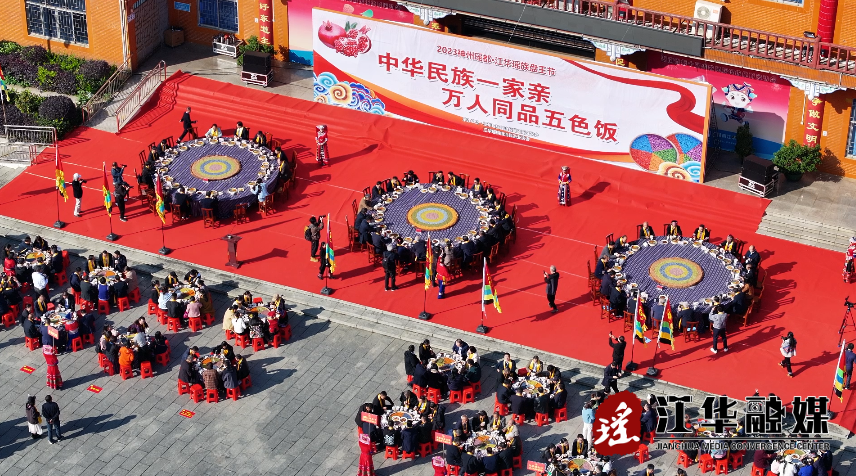 谒祖仪式结束后,与会嘉宾代表一同前往盘王殿前广场参加“中华民族一家亲 万人同品五色饭”活动,共享特色美食,共话民族团结一家亲。