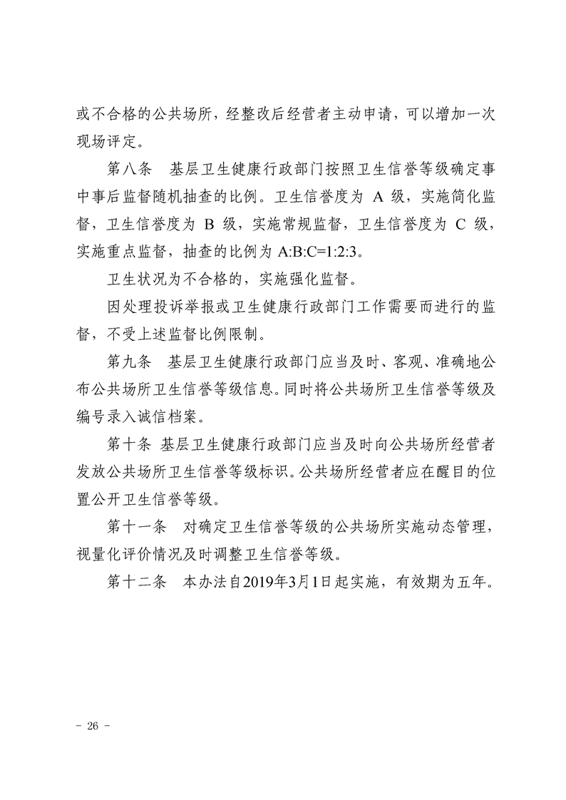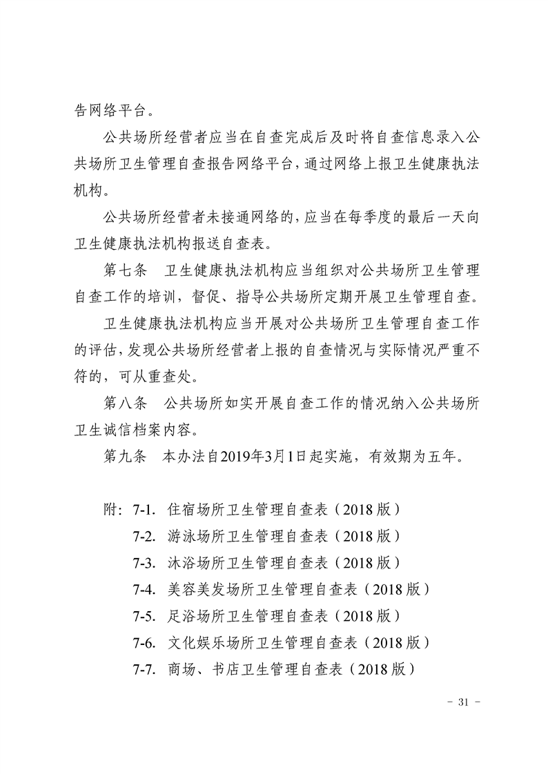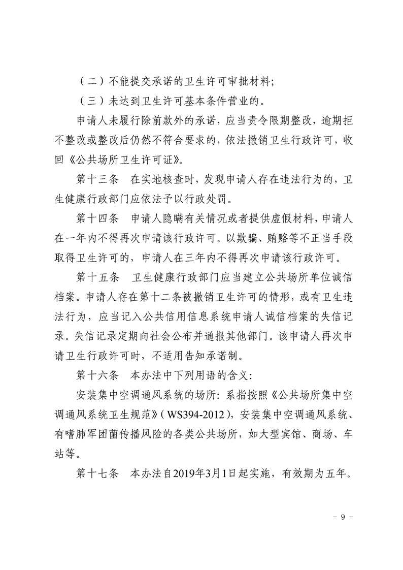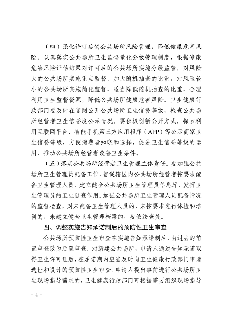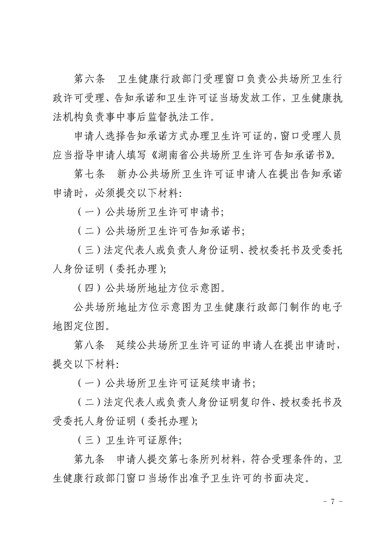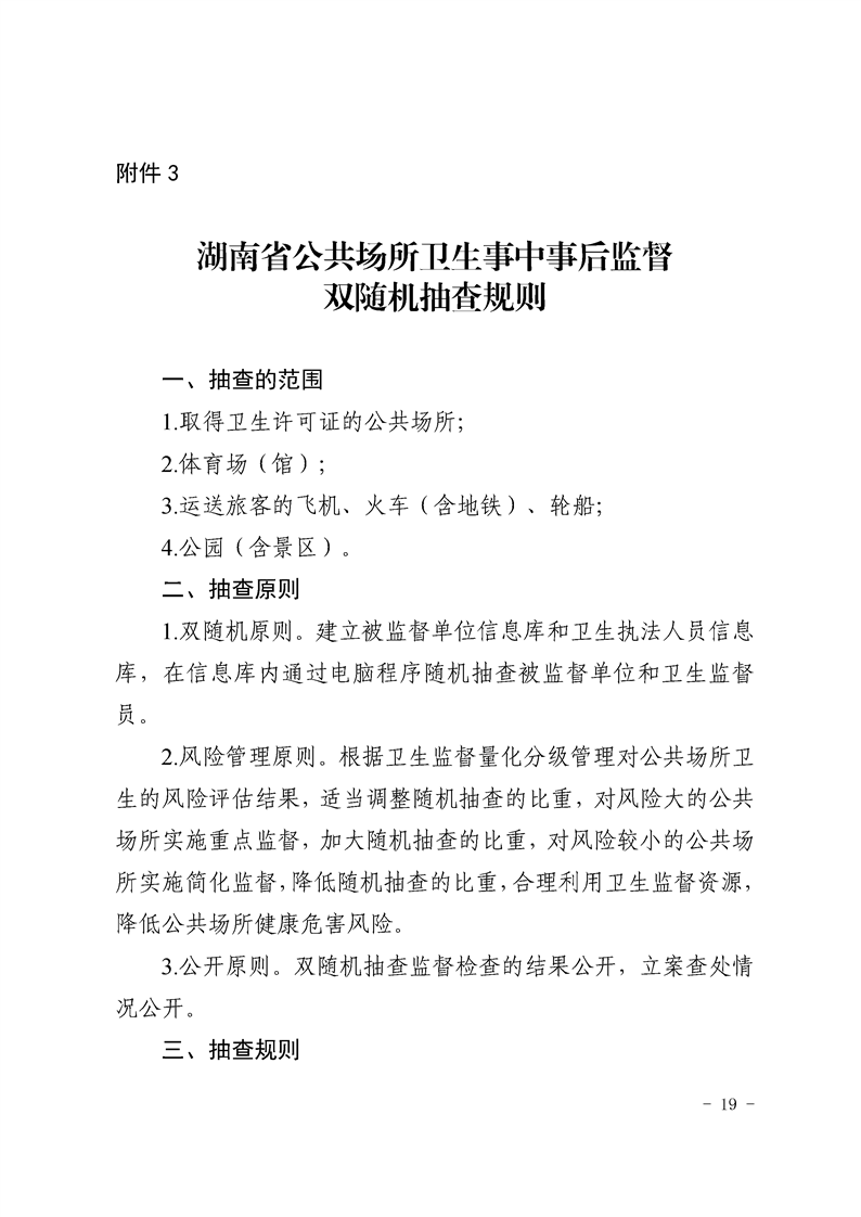 《湖南省卫生健康委员会关于印发湖南省公共场所卫生许可告知承诺制实施办法及加强事中事后监管相关配套制度的通知》湘卫监督发〔2019〕1号