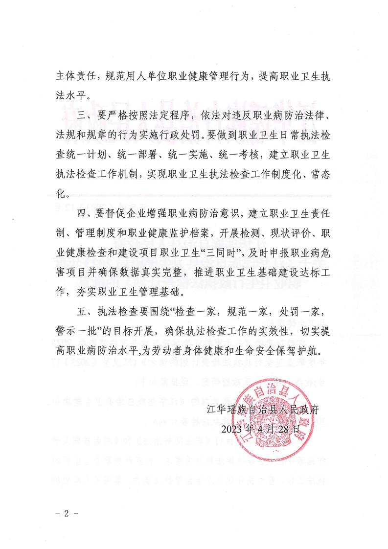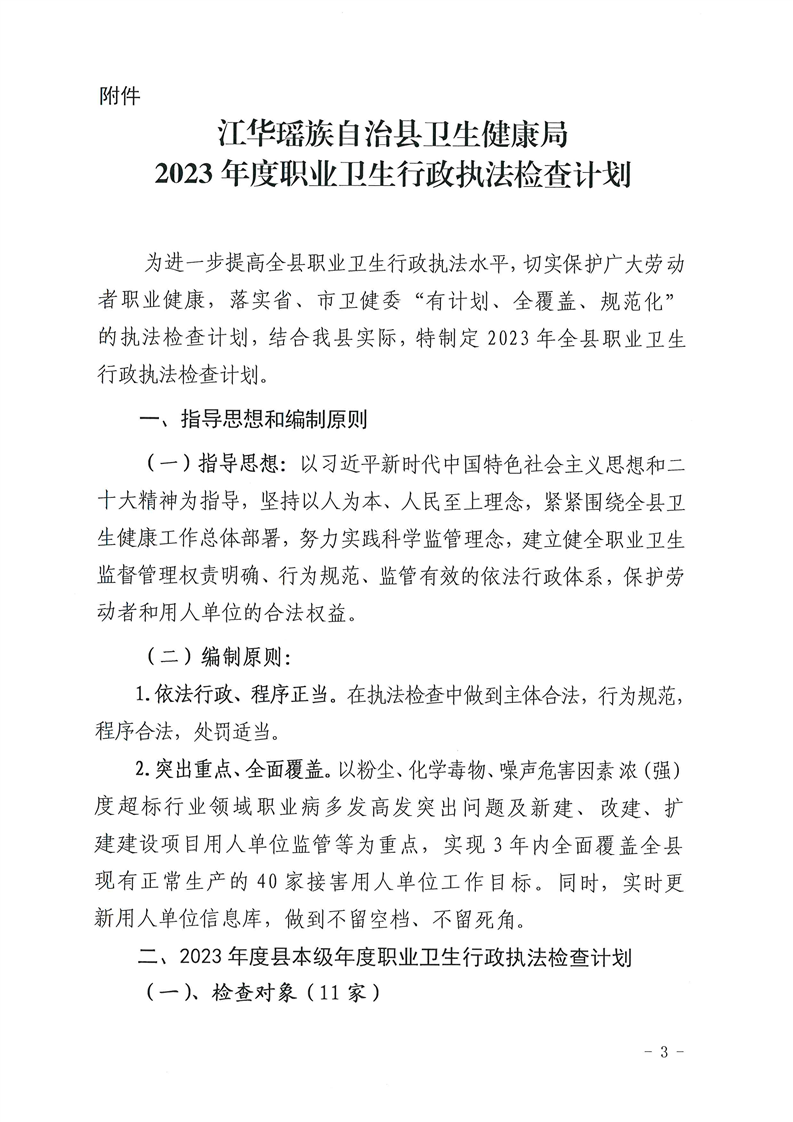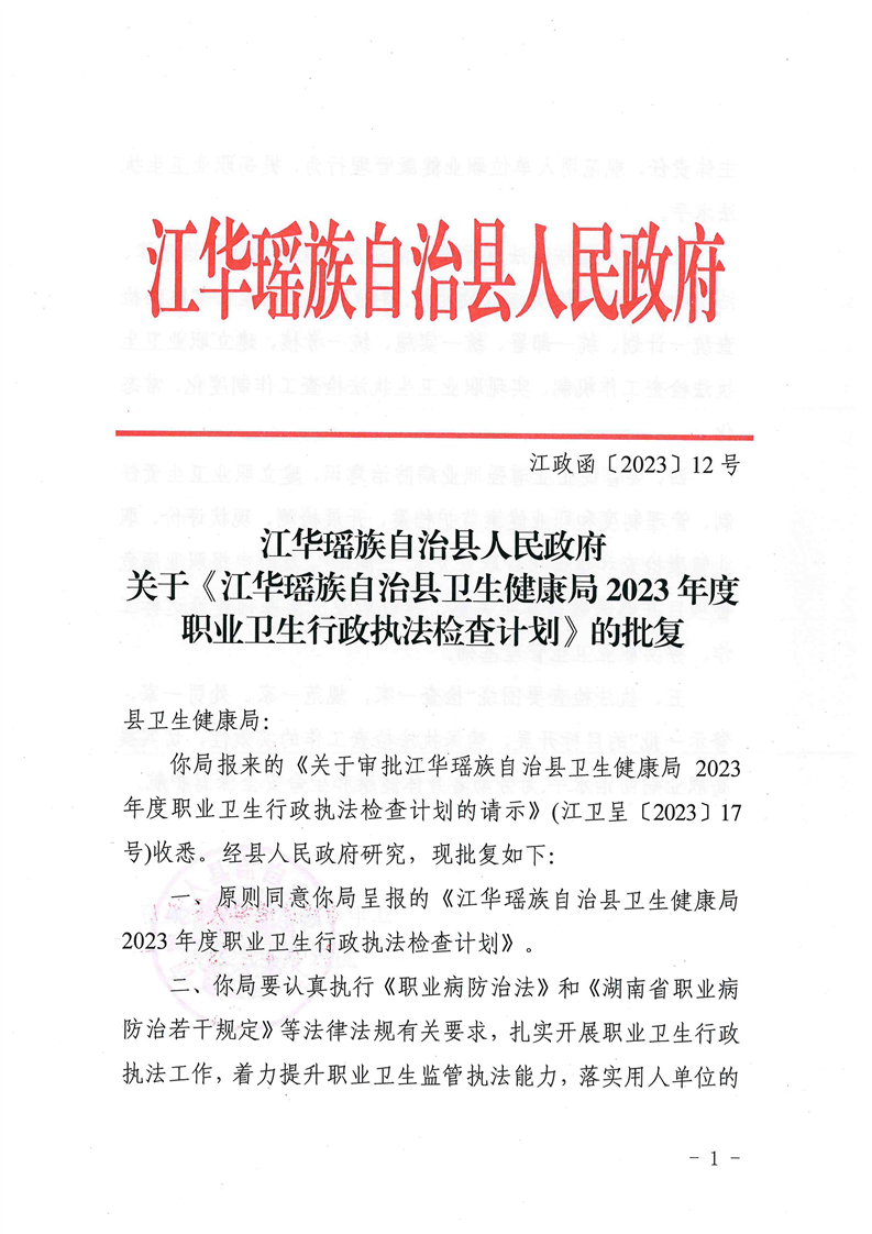 江华瑶族自治县人民政府关于《江华瑶族自治县卫生健康局2023年度执业卫生行政执法检查计划》的批复