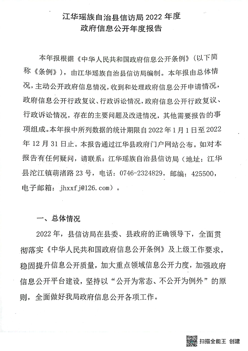 江华瑶族自治县信访局2022年度政府信息公开年度报告