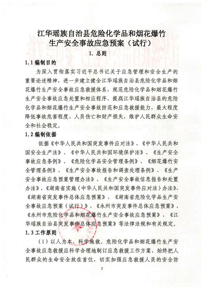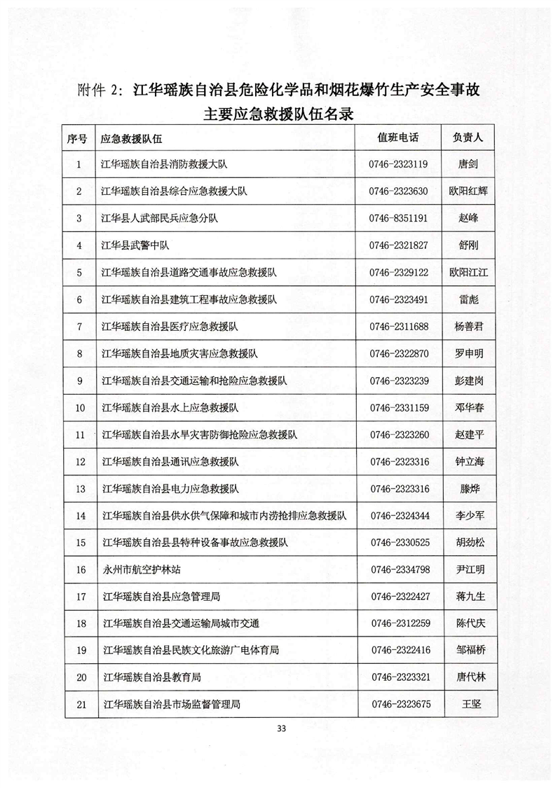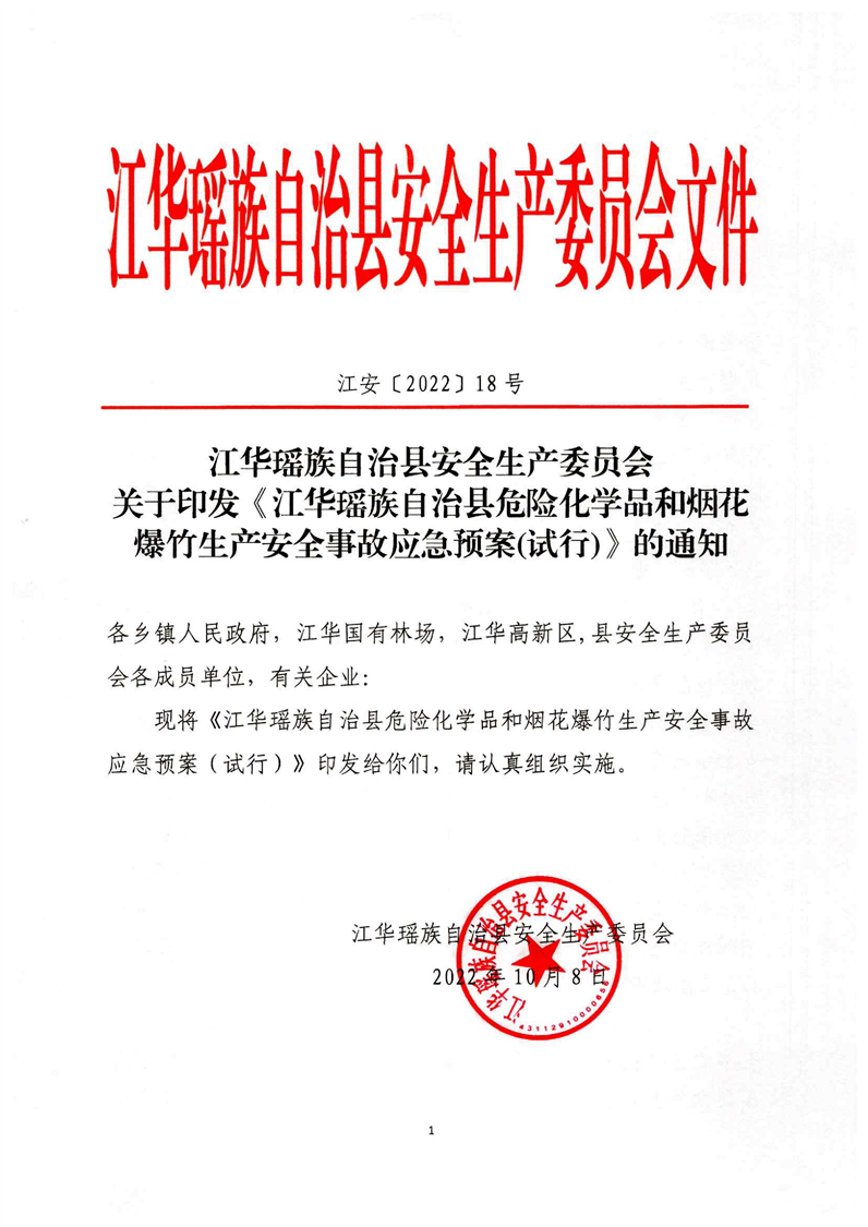 江华瑶族自治县危险化学品和烟花爆竹生产安全事故应急预案(试行)