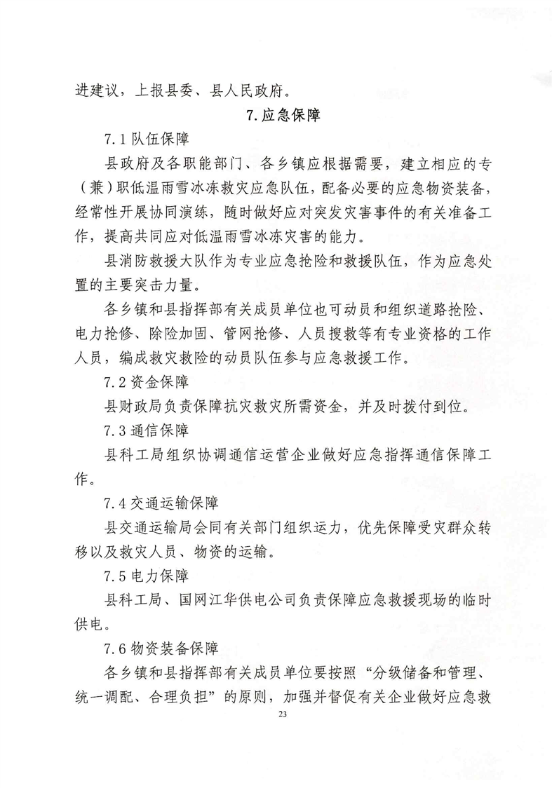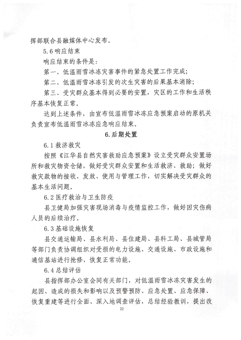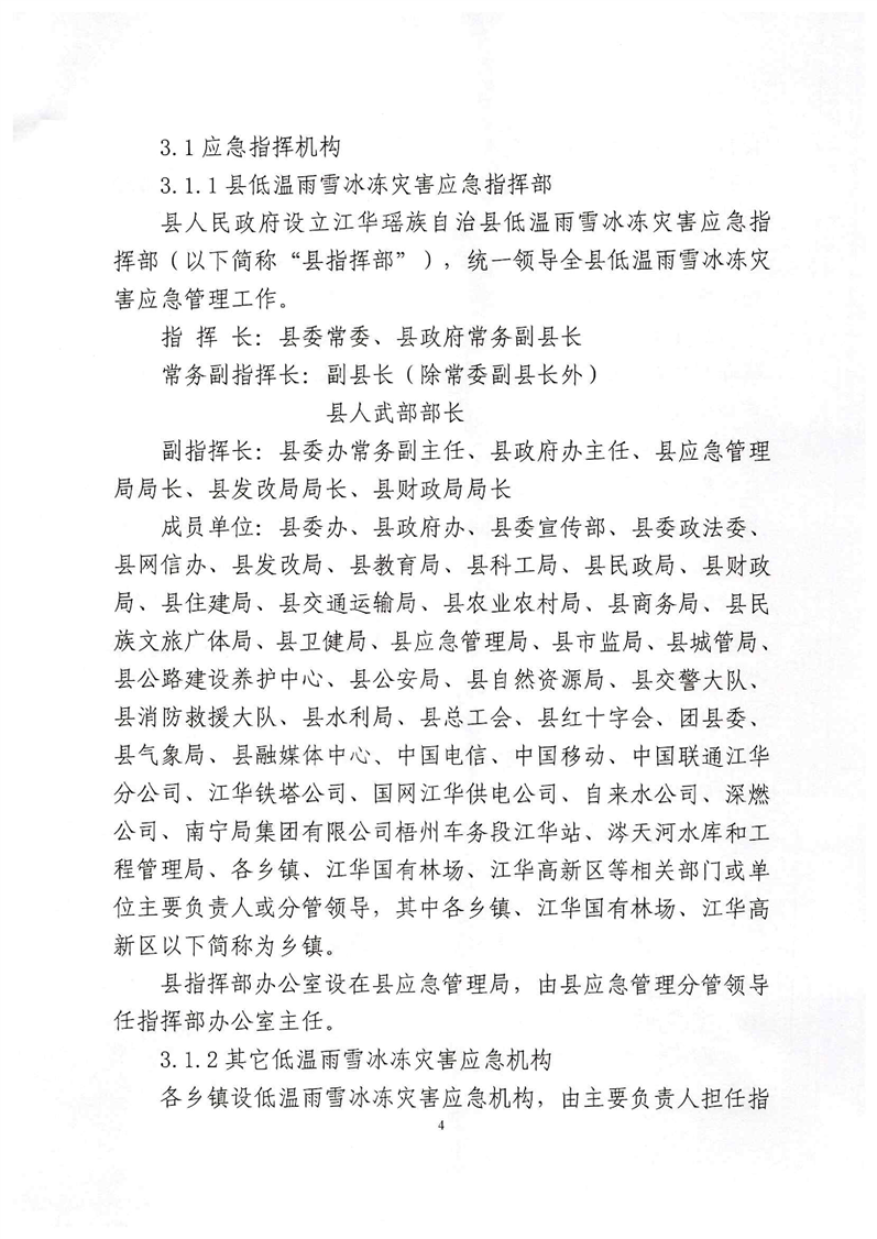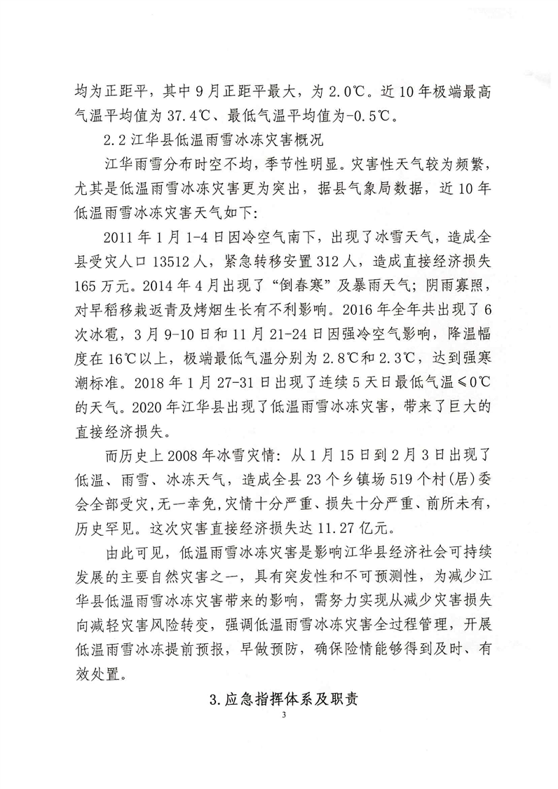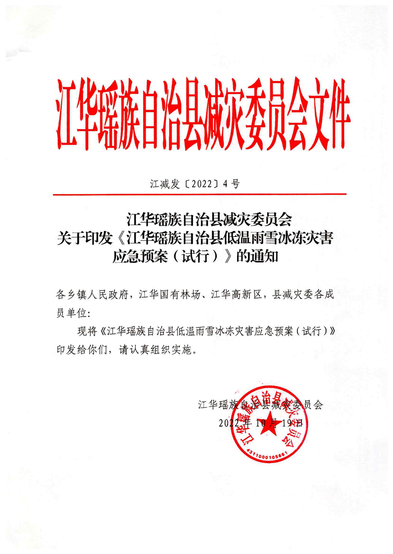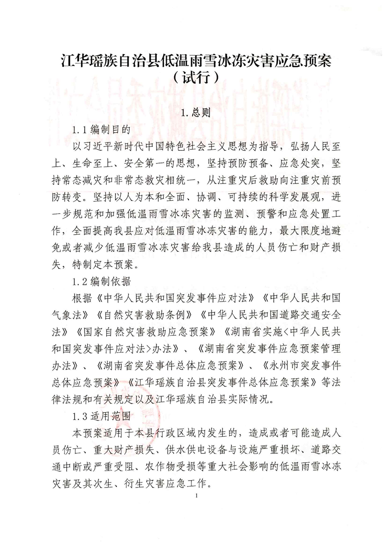 江华瑶族自治县低温雨雪冰冻灾害应急预案(试行)