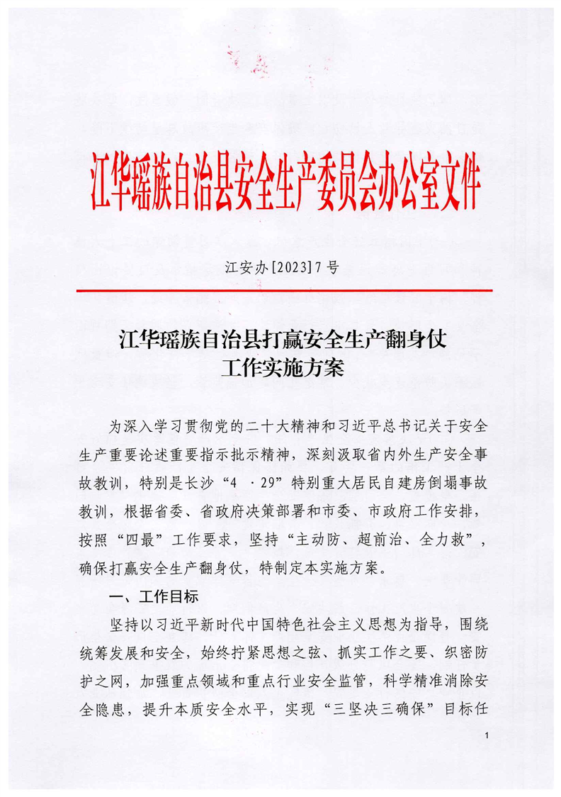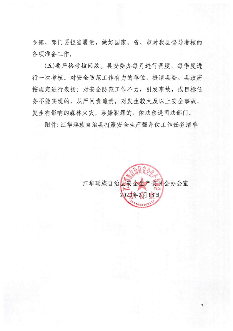 江安办[2023]7 号江华瑶族自治县打赢安全生产翻身仗工作实施方案