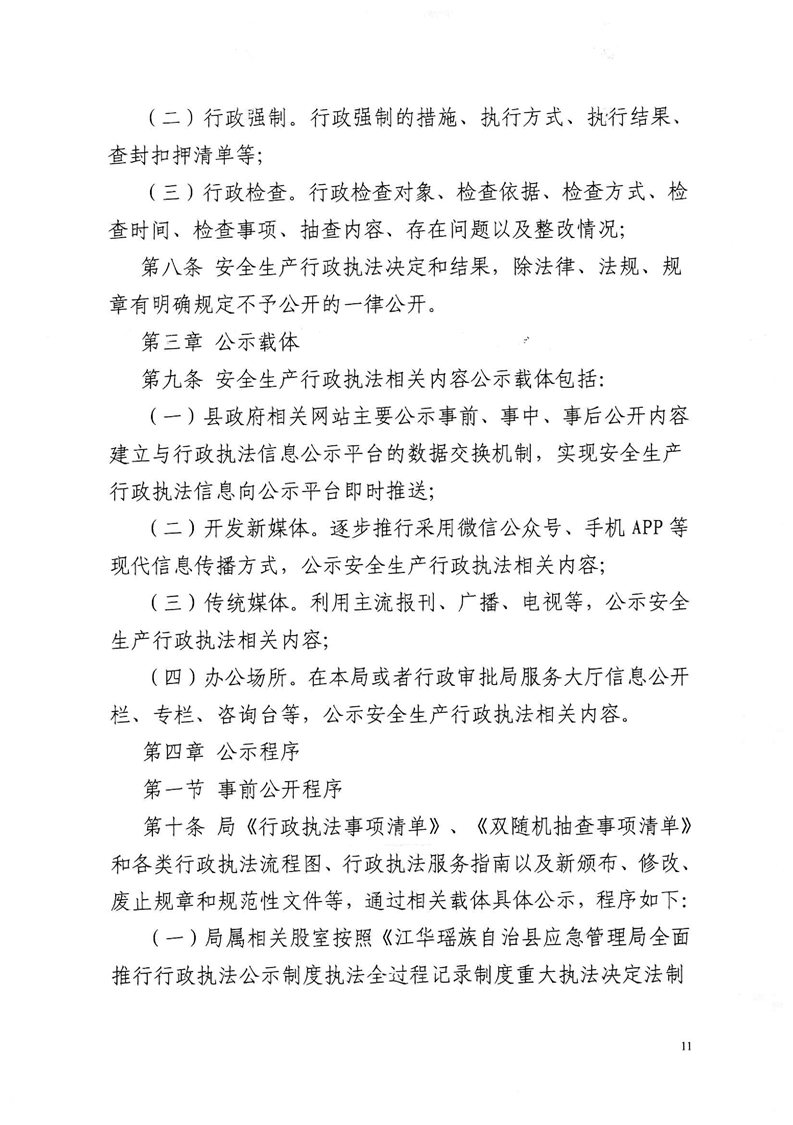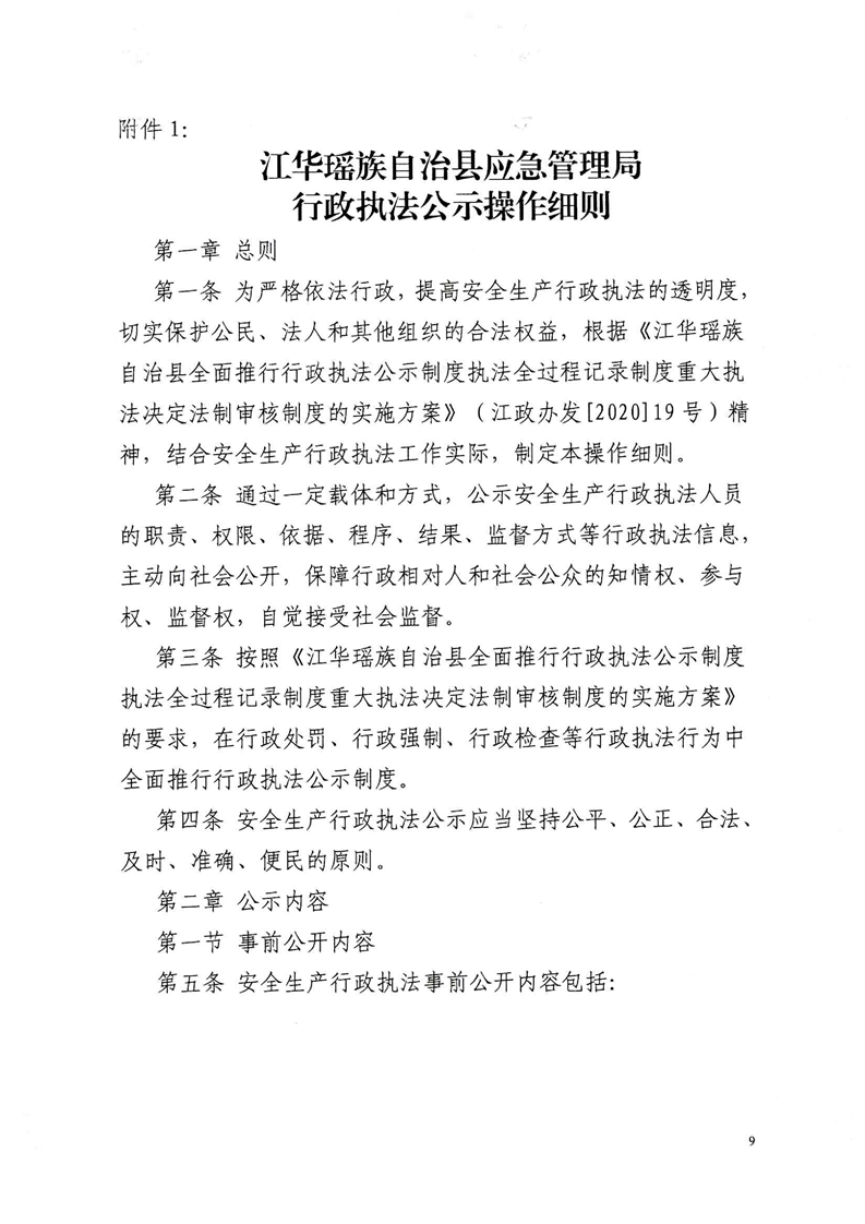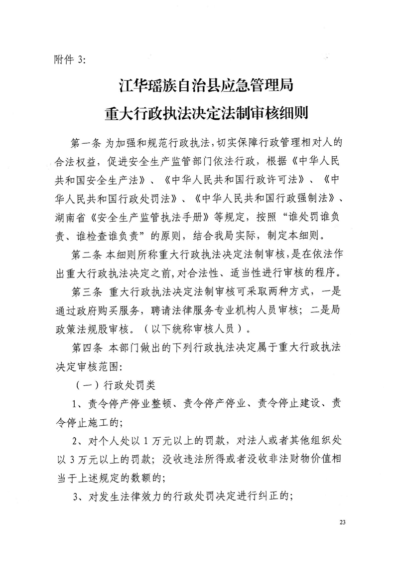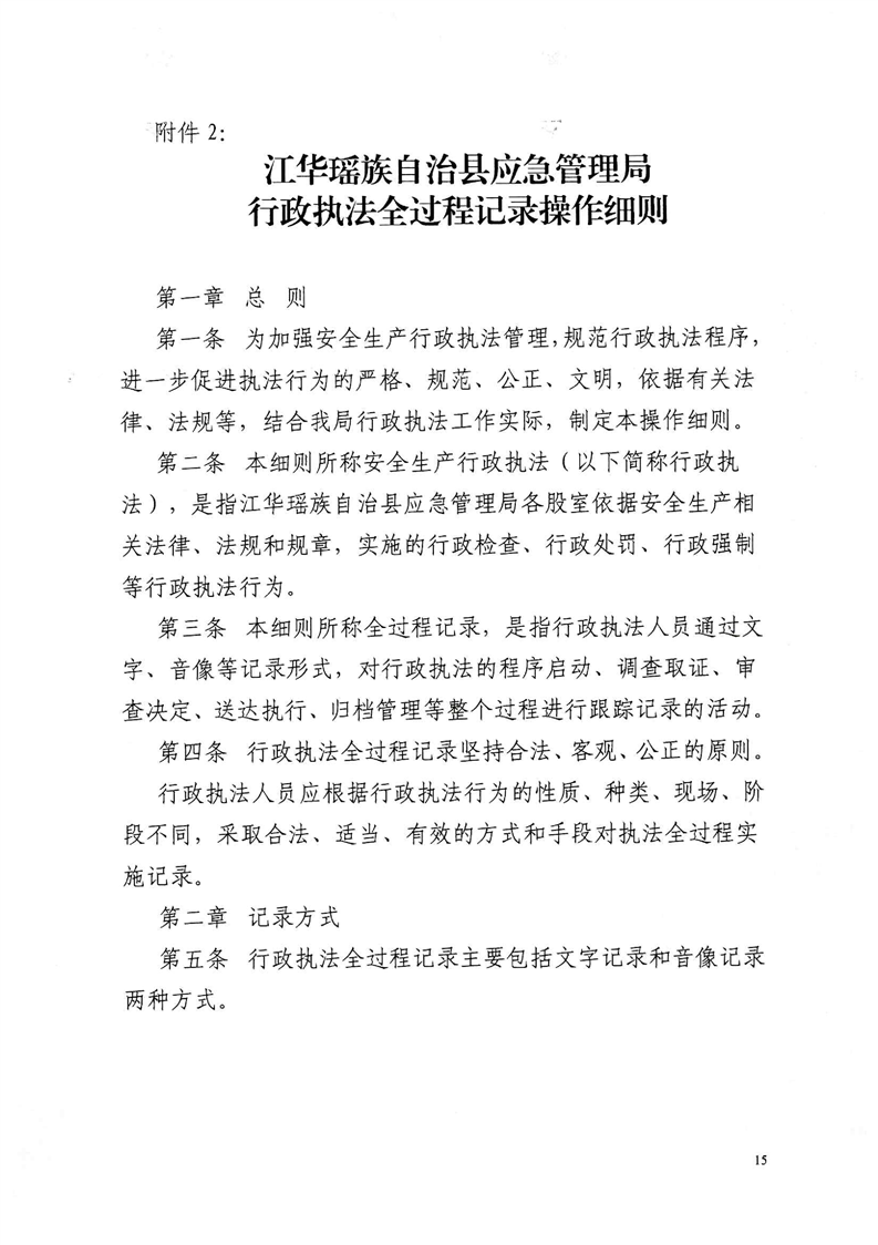 江华瑶族自治县应急管理局关于全面推行行政执法公示制度、执法全过程记录制度、重大执法决定法制审核制度的实施方案的通知