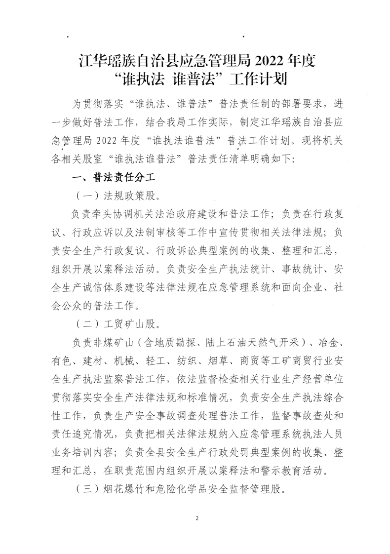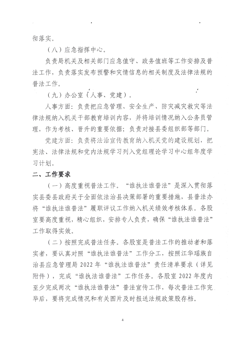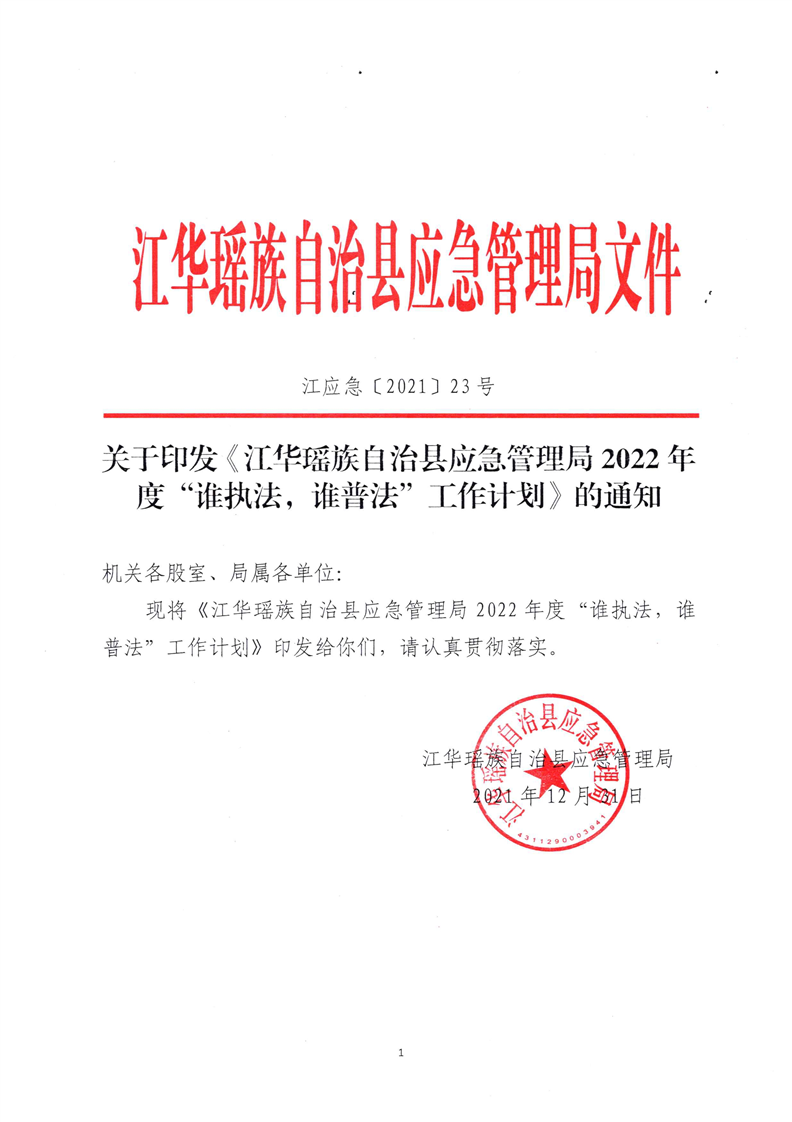 关于印发《江华瑶族自治县应急管理局“谁执法,谁普法”工作计划》的通知