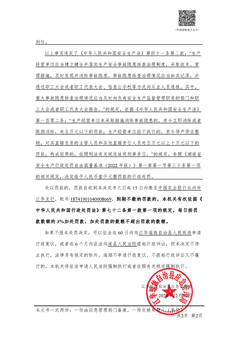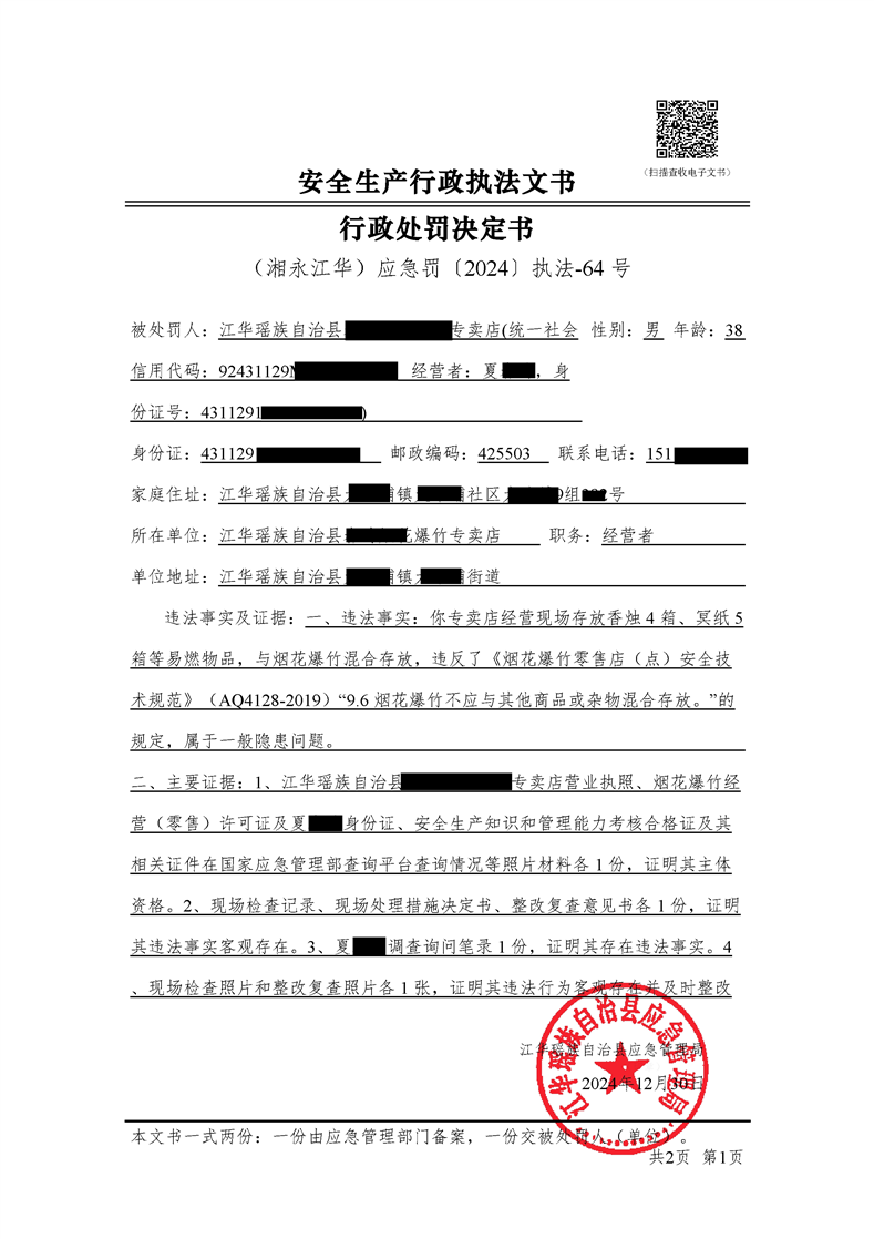 (湘永江华)应急罚〔2024〕执法-64 号