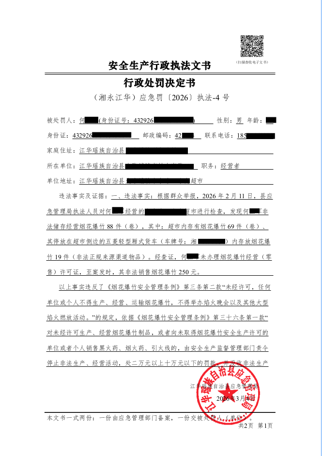 (湘永江华)应急罚〔2026〕执法-4 号