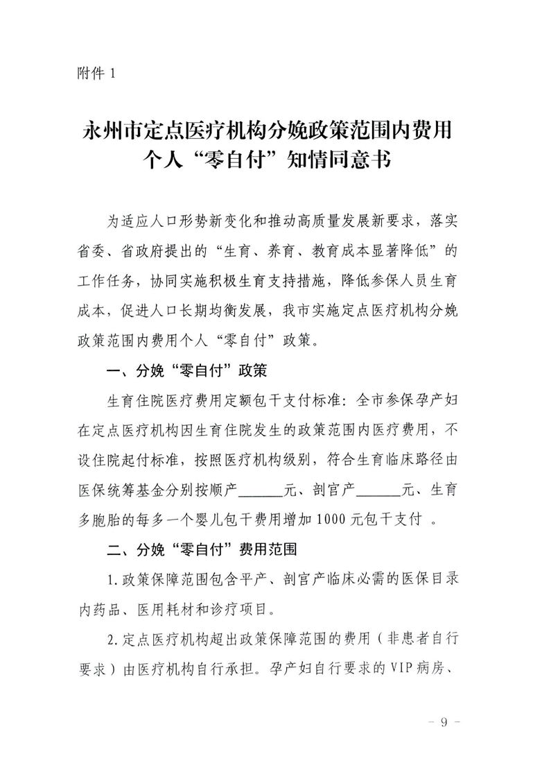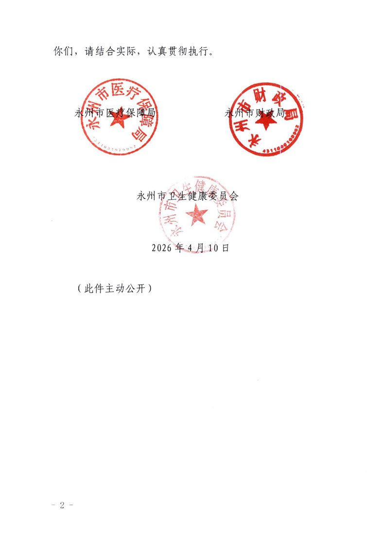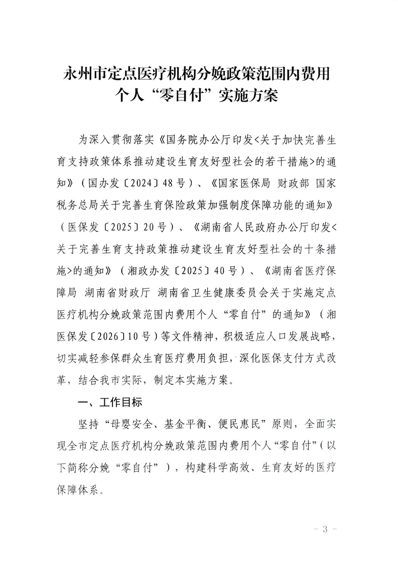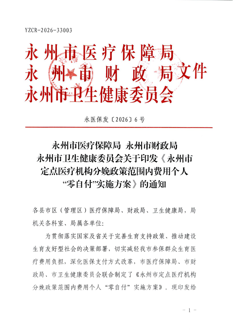 (永医保发〔2026〕6号)关于印发《永州市定点医疗机构分娩政策范围内费用个人“零自付”实施方案》的通知