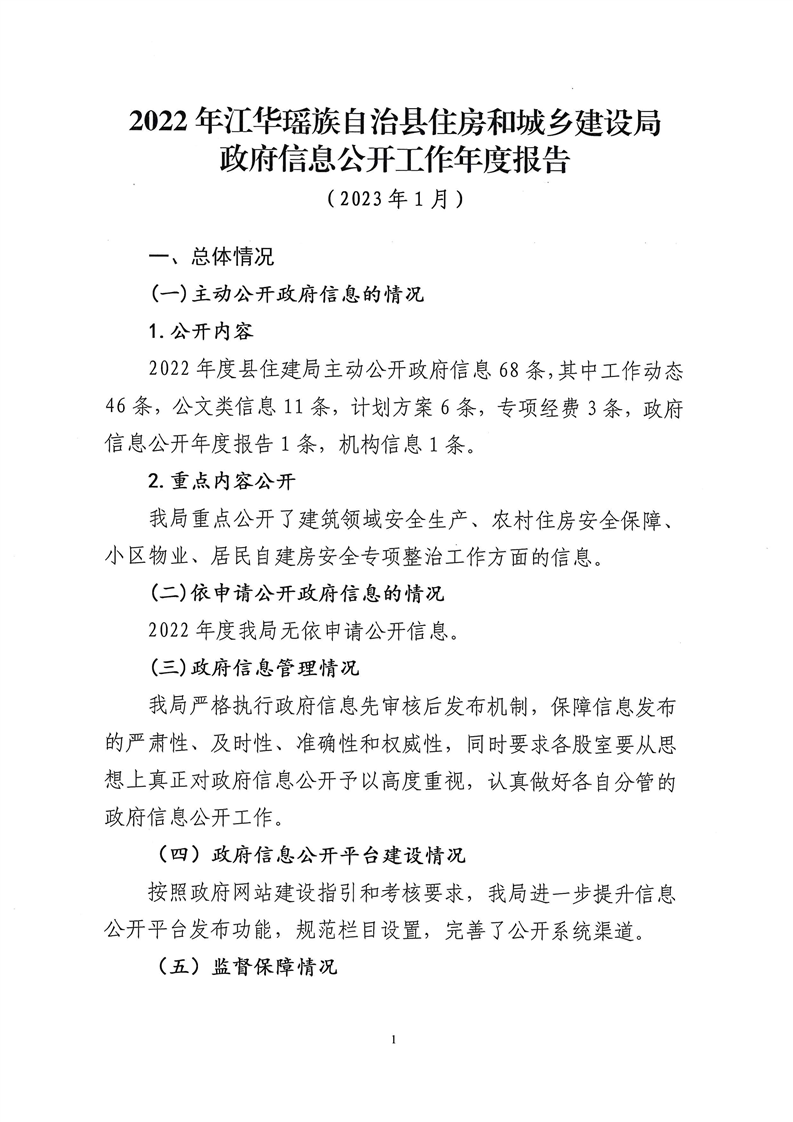 江华瑶族自治县住房和城乡建设局2022年政府信息公开工作年度报告