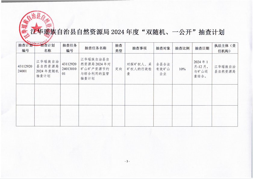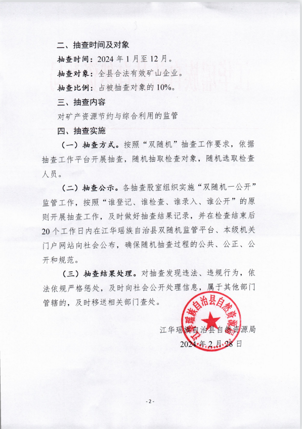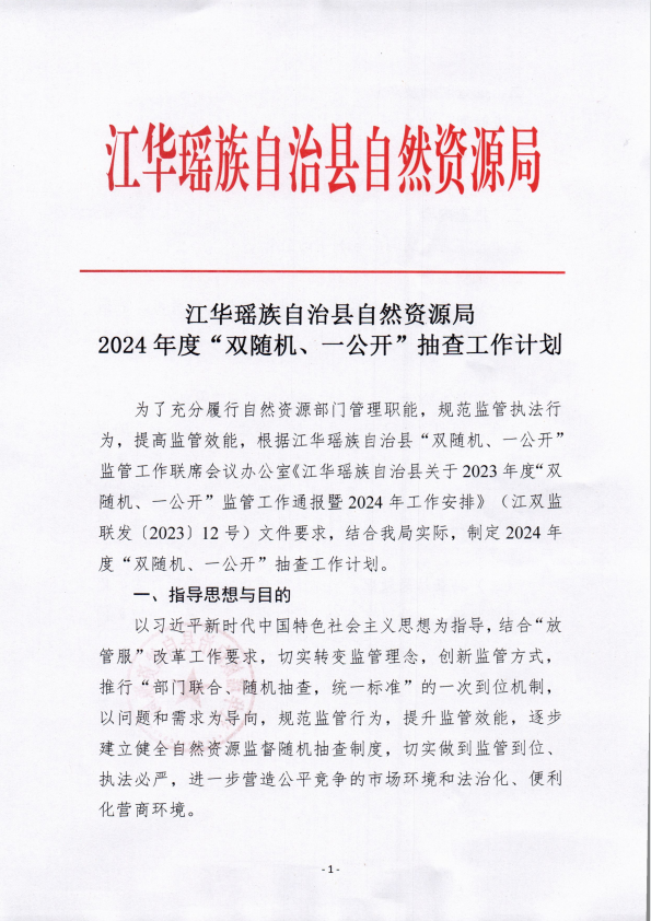 江华瑶族自治县自然资源局2024年度“双随机、一公开”抽查工作计划