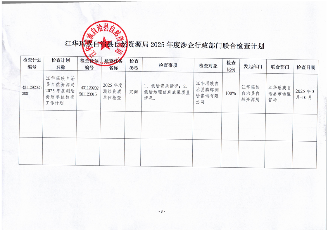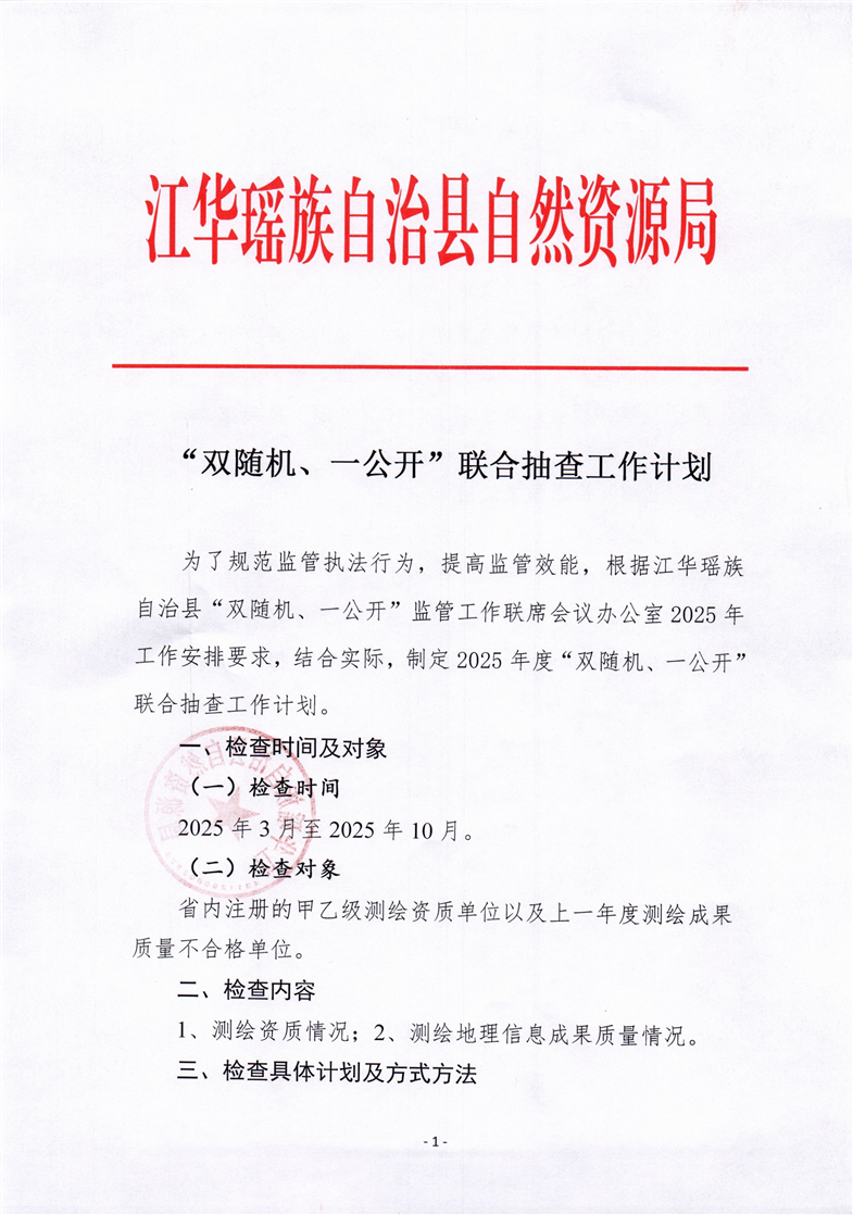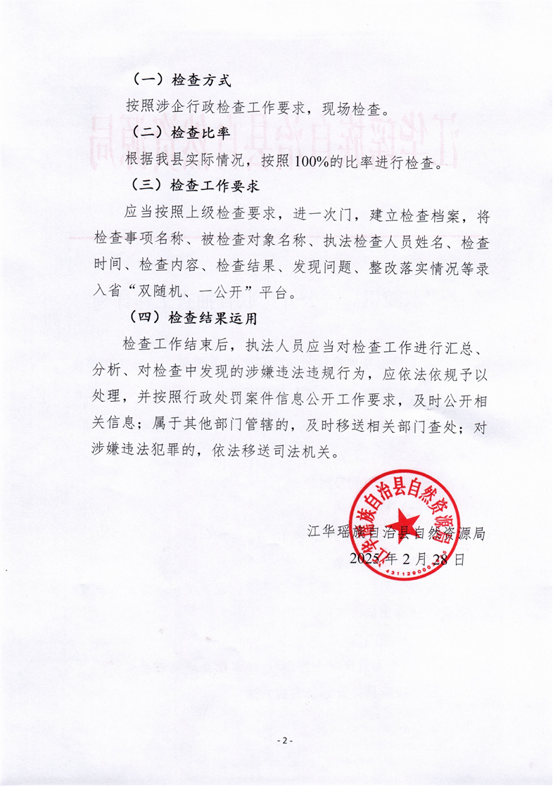 江华瑶族自治县自然资源局2025年度“双随机、一公开”联合抽查工作计划