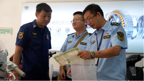 检查组随后前往电动自行车销售门店,检查在售车辆是否符合安全标准。仔细核查了车辆进货、销售台账,确保来源与流向清晰可溯。检查人员严格查验车辆合格证、一致性证书和3C认证标识,杜绝“三无”产品和非法改装、拼装车辆流向市场。
