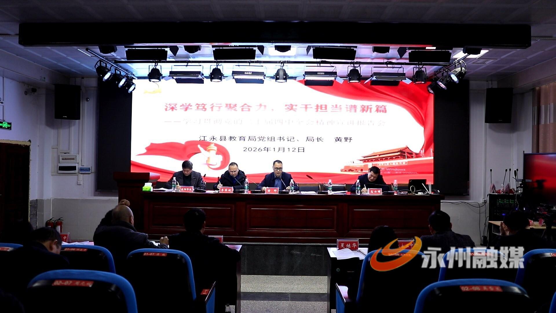 今日永州讯(通讯员 廖光瑜 蒋武文)1月12日,江永县教育局召开党的二十届四中全会精神宣讲暨教育工作部署会议,县教育局、各中小学校幼儿园党组织书记、校长、园长参会。