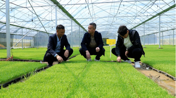 在该镇的智能育秧大棚内,经过统一浸种消毒和精准温控培育的秧苗长势良好。技术人员正对这批秧苗进行最后检测,确保达到机插标准。