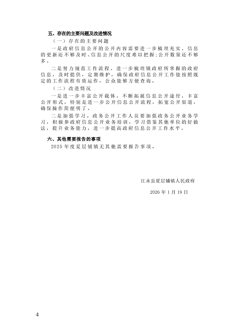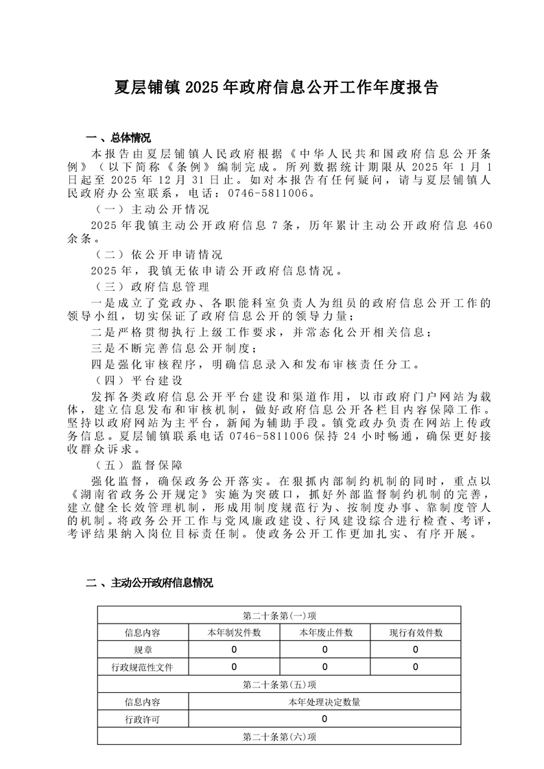 夏层铺镇2025年政府信息公开工作年度报告