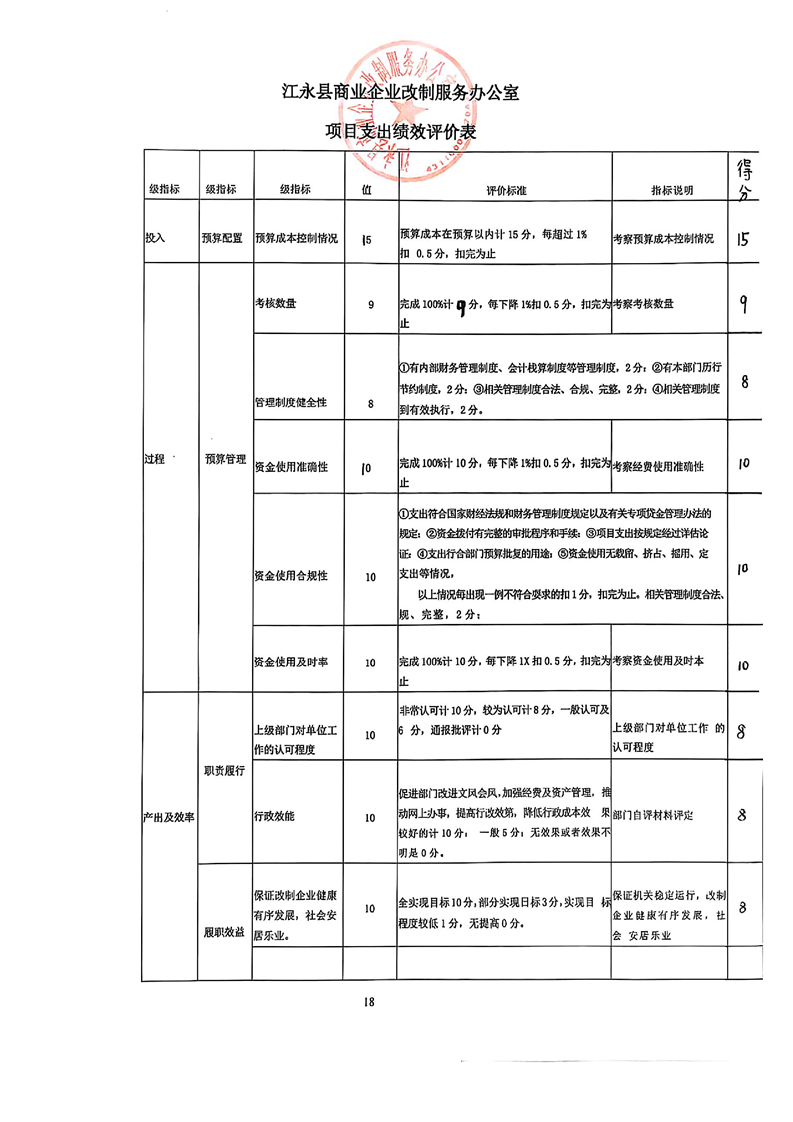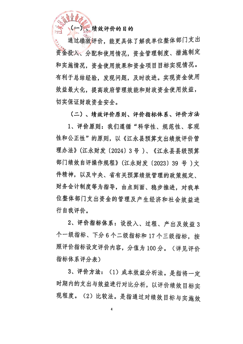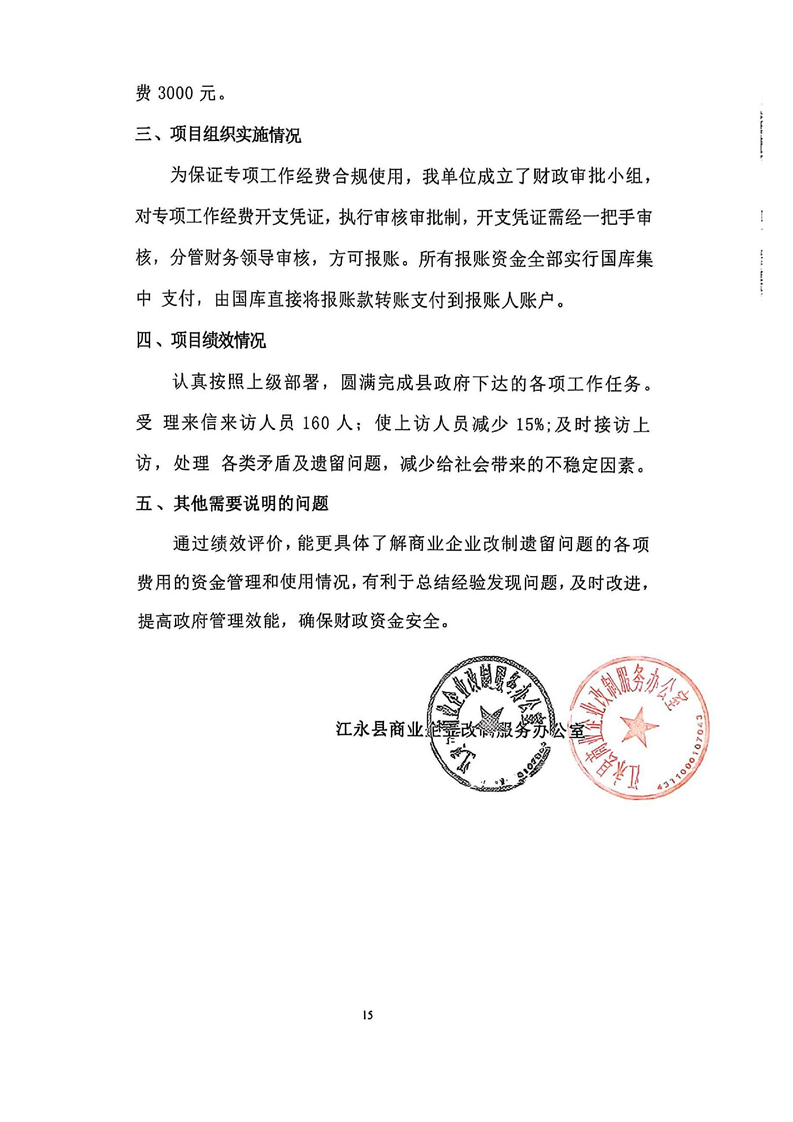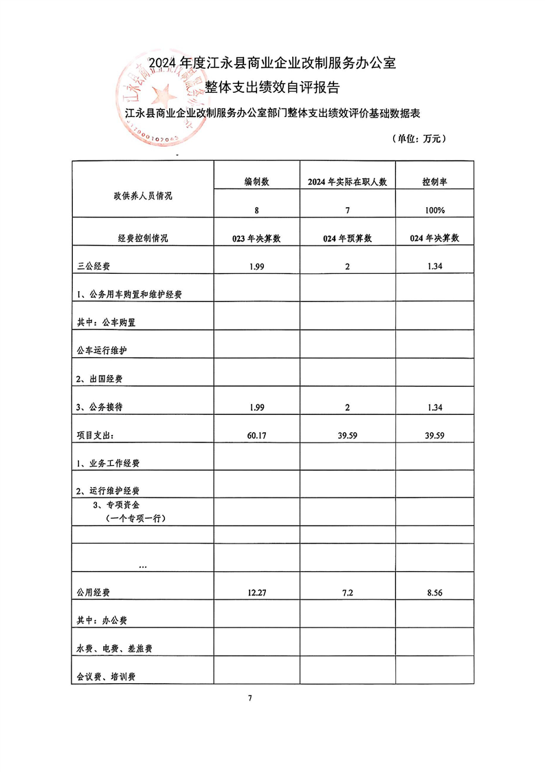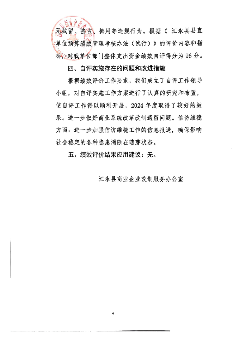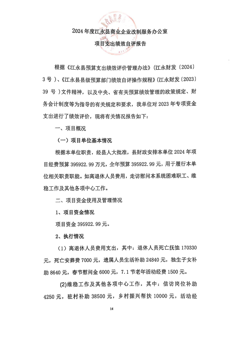2024年度江永县商业企业改制服务办公室整体支出绩效自评报告
