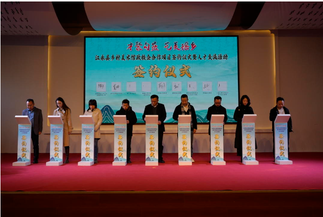 在活动现场,江永县成功与西安美术学院、湖南师范大学美术学院、湖南科技学院美术与艺术设计学院、鲁迅美术学院等7所高等院校现场签约并达成合作。同时,对西安美术学院、湖南师范大学美术学院、湖南科技学院美术与艺术设计学院的乡村美术馆进行了揭牌。