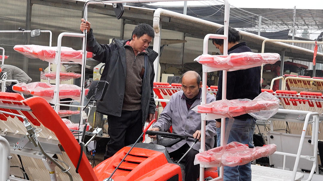 江永县农盼农机有限公司负责人周多智说:“过不了多久就要开始插秧种地了,加上有各种补贴政策,这阵子来看机子的用户也特别多了,我们这阵子也卖了有十多台了吧,大部分都办了以旧换新买的新农机。”