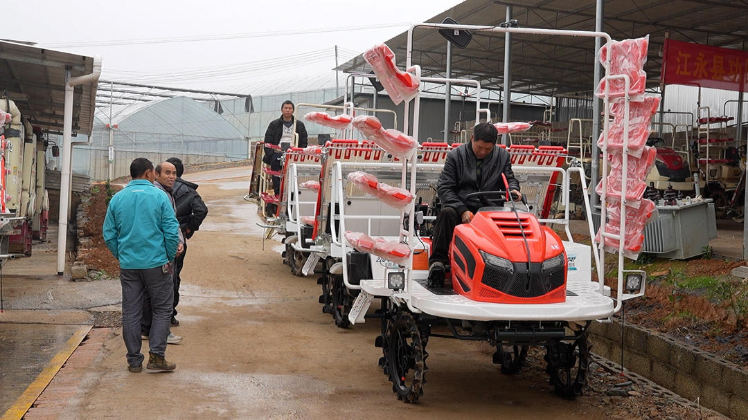 走进江永县功国现代农机专业合作社,8台新购置的农机整齐摆放,农机手们正忙着对农机设备进行调试和保养,确保农机以最佳状态投入春耕生产。