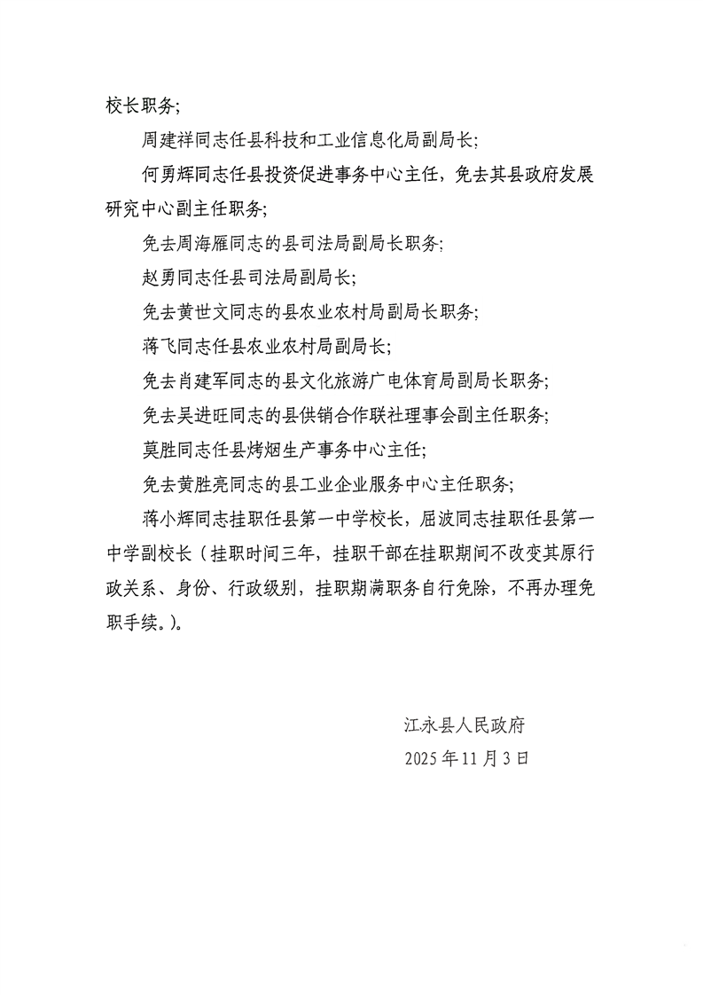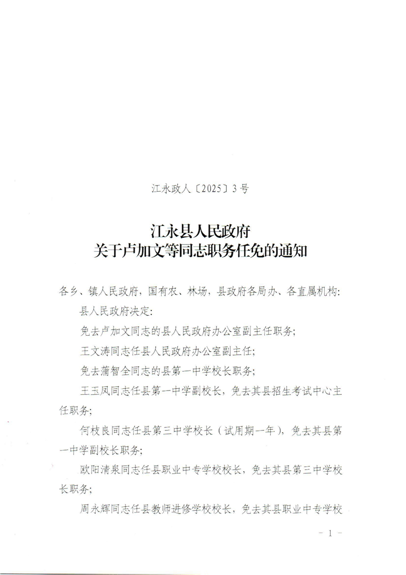 江永政人〔2025】3号江永县人民政府关于卢加文等同志职务任免的通知
