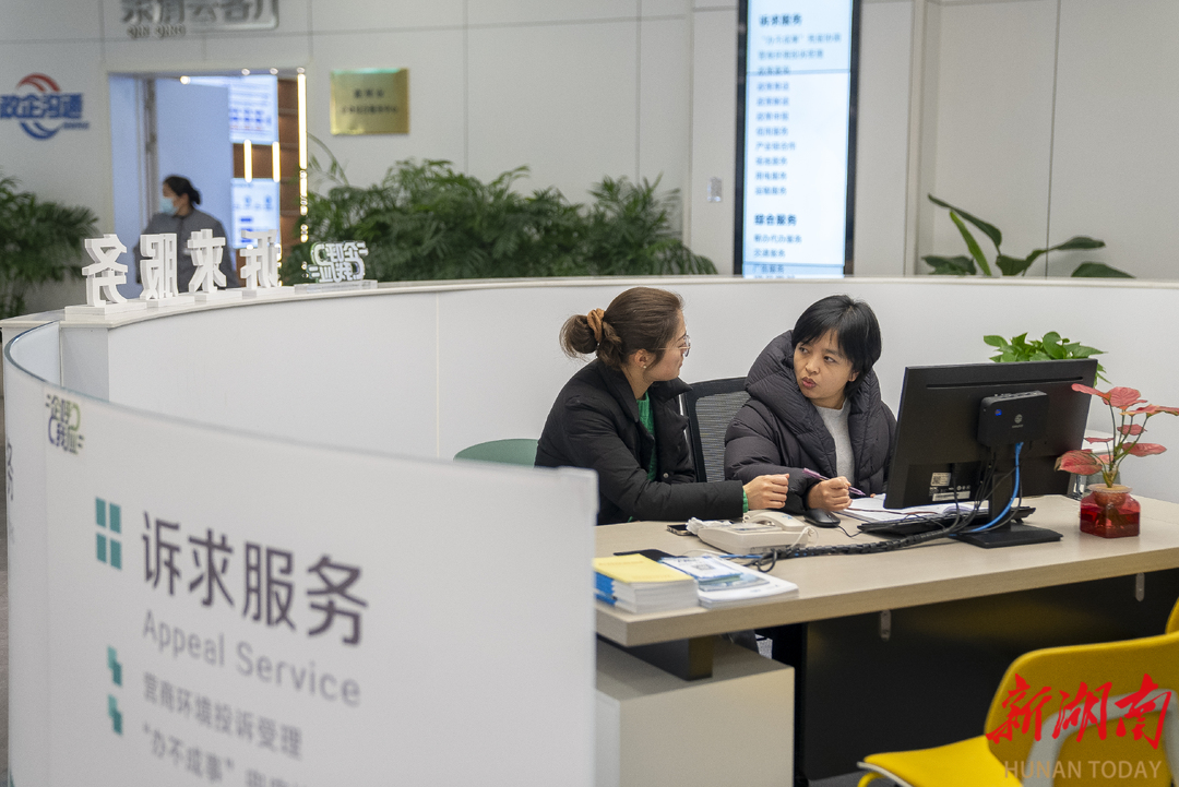 (浙江省湖州市德清县企服中心,“兜底办”窗口的工作人员正在为群众办理事项。湖南日报全媒体记者 童臻熙 摄)