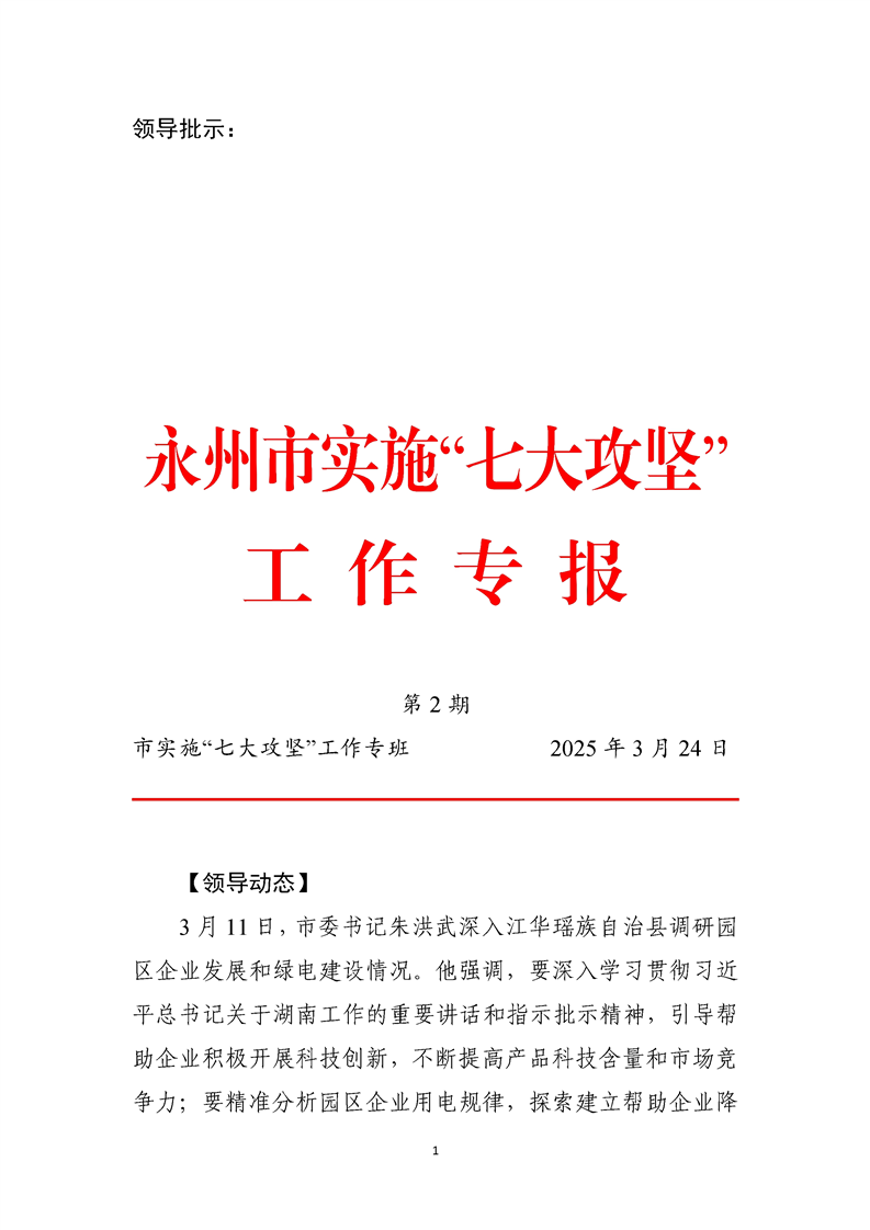 永州市实施“七大攻坚”工作专报(第2期)