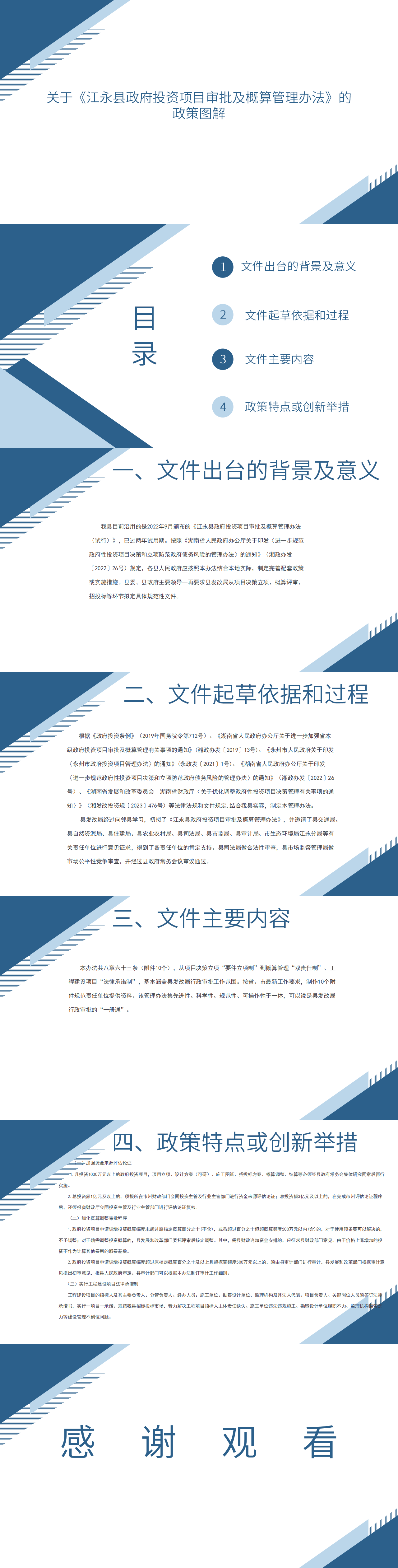 关于《江永县政府投资项目审批及概算管理办法》的政策解读