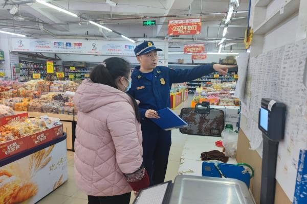 监督检查人员实地抽查了消防设施运行情况和消防安全责任制落实情况,重点对场所疏散通道、安全出口是否畅通,消防设施和器材的日常管理维护是否落实,应急照明、灭火器、消火栓是否完好有效,场所内员工“四个能力”知识是否掌握等情况进行认真细致的检查。同时,结合超市人员密集、商品种类多,危险性高等特点,向超市消防管理人员进行现场讲解。针对检查中发现的各类火灾隐患问题,监督检查人员当场提出整改意见,明确整改时限,依法下发整改通知书,要求负责人及时整改到位。