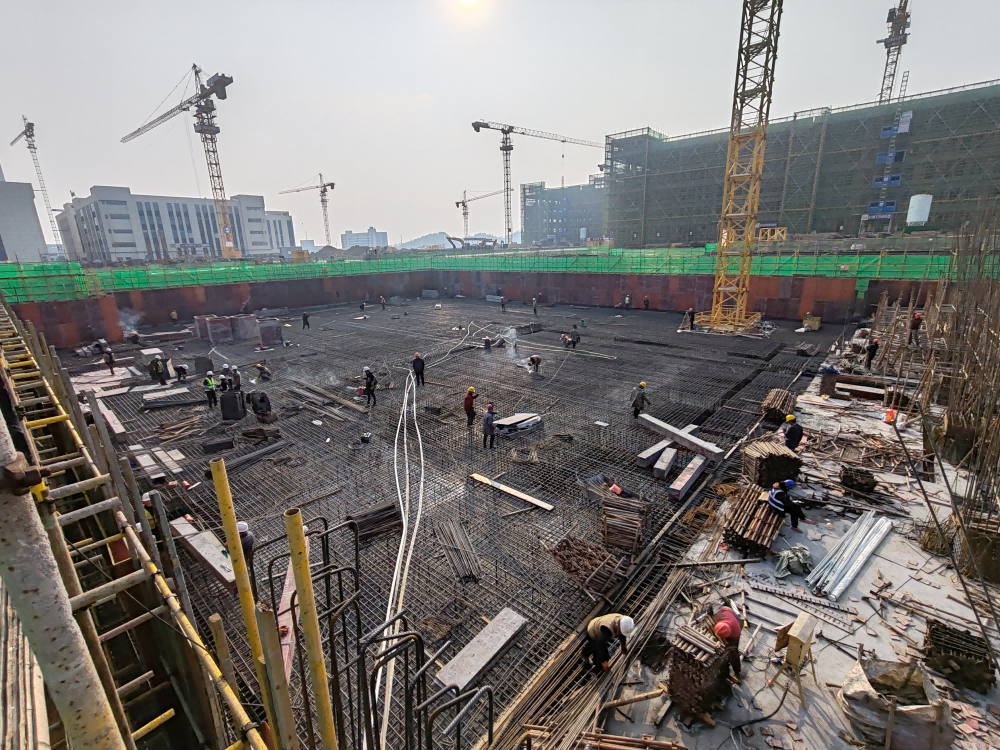在磁性电子元器件标准厂房项目1号楼工地,只见焊花四溅,人头攒动,百余名工人正协同进行地下室底板基础施工。据了解,该项目于今年4月开工建设,总建筑面积13.3万平方米,含7栋标准厂房和1栋科研楼,目前已完成3栋标准厂房主体建设。永州产投集团项目管理人员介绍道,“近期大家一同克服了严寒天气考验,在确保质量和安全的基础上,全力推动项目建设进度往前赶,争取早建成,早交付。”