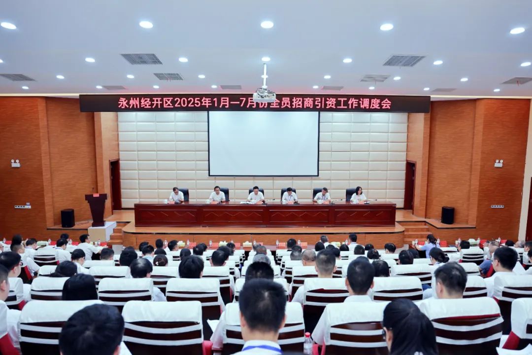 8月22日下午,永州经开区1月至7月全员招商引资工作调度会召开,永州市委常委、副市长、永州经开区党工委第一书记肖扬出席并讲话。区党工委书记周润润主持,区党工委副书记、管委会主任汤小兵,市人民政府督查室主任方钦出席。永州经开区全体干部职工,永州陆港、永州经开区冷水滩片区、永州产投集团领导班子成员及中层以上干部,锦络电子、意兆电子、力豪机械、骏捷智能、益辉智能等以商招商成效显著企业家参加。