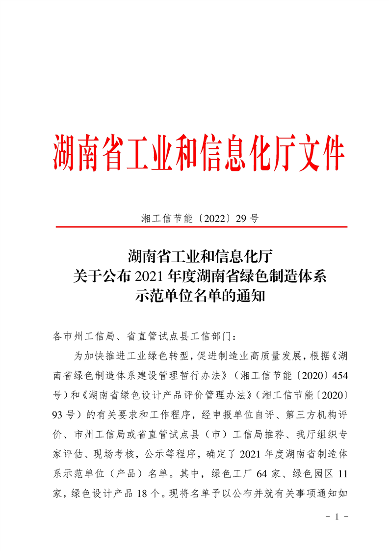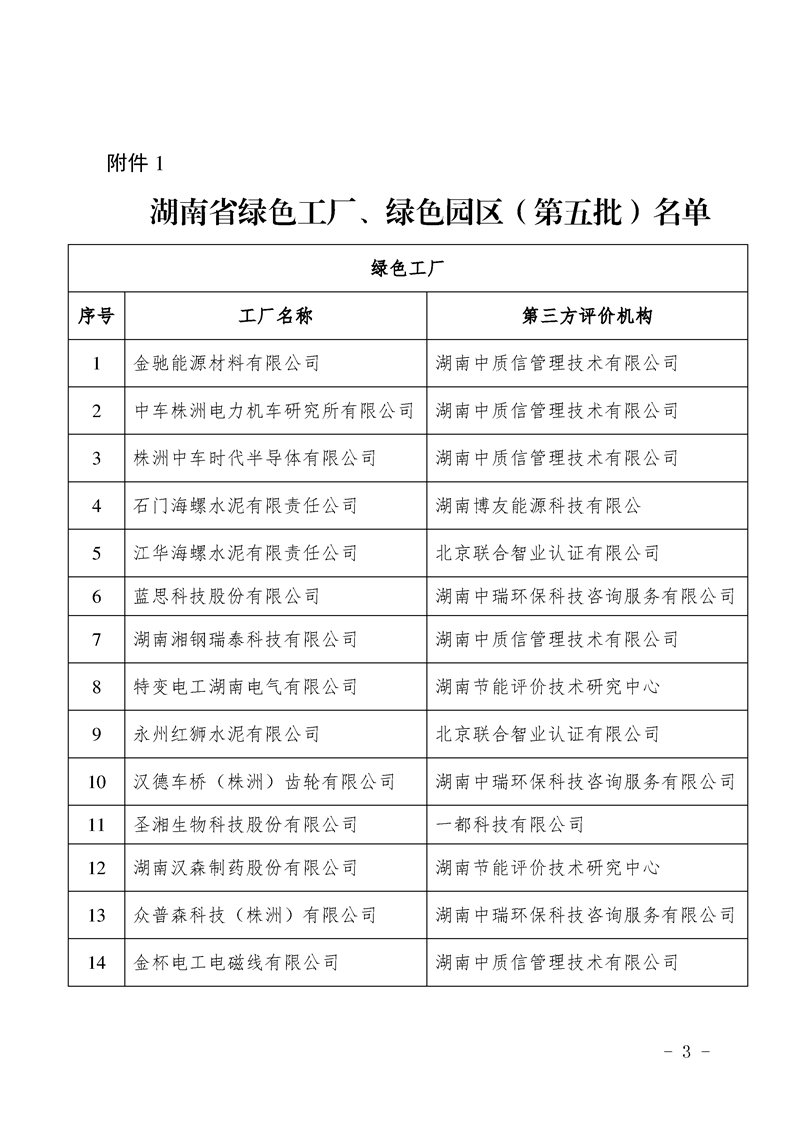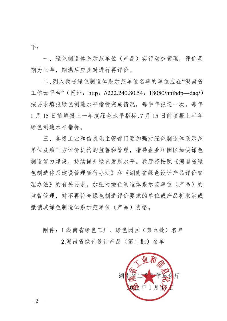 关于公布2021年度湖南绿色制造体系示范单位 名单的通知(2)