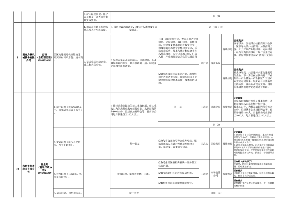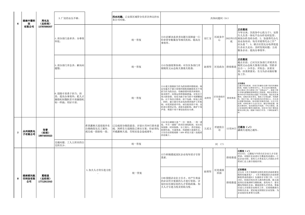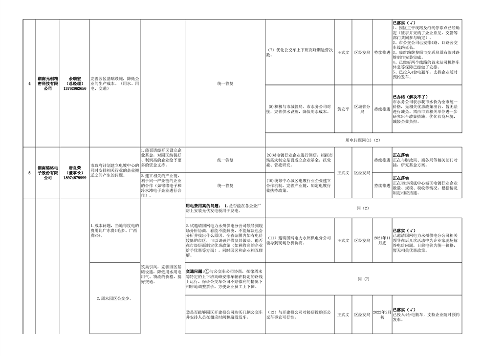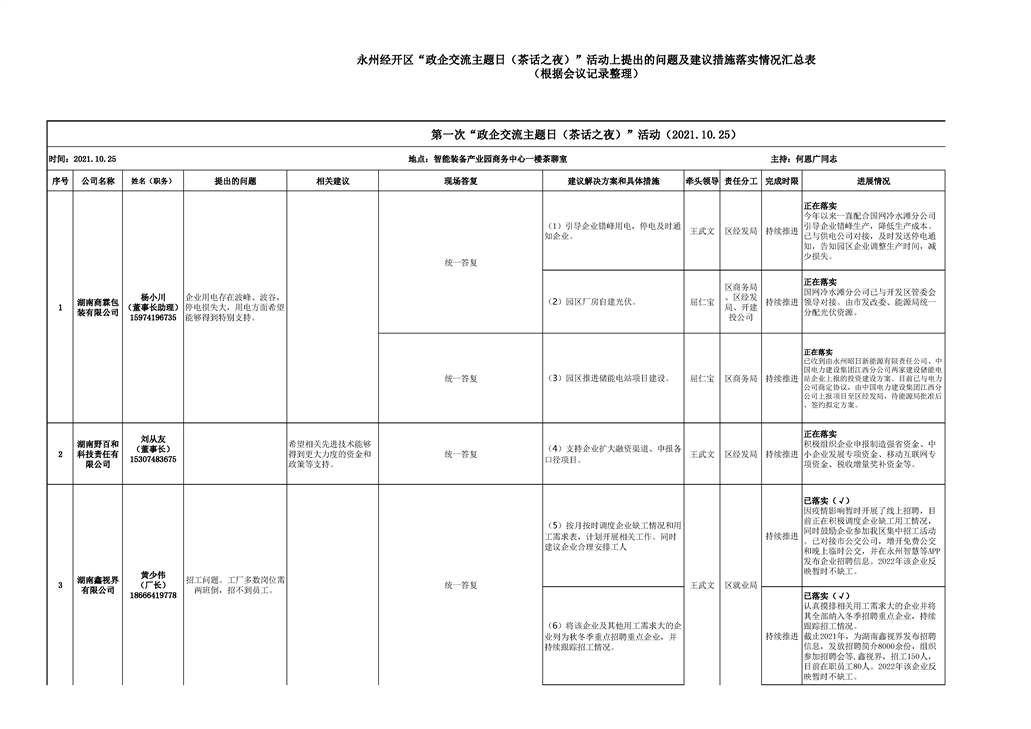 第一次政企交流日活动园区企业问题与意见汇总