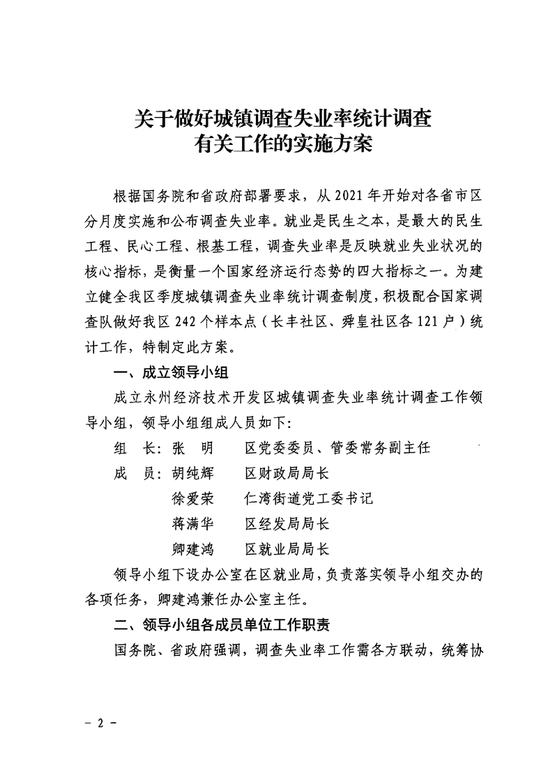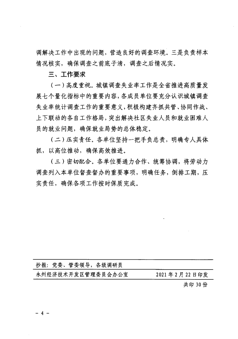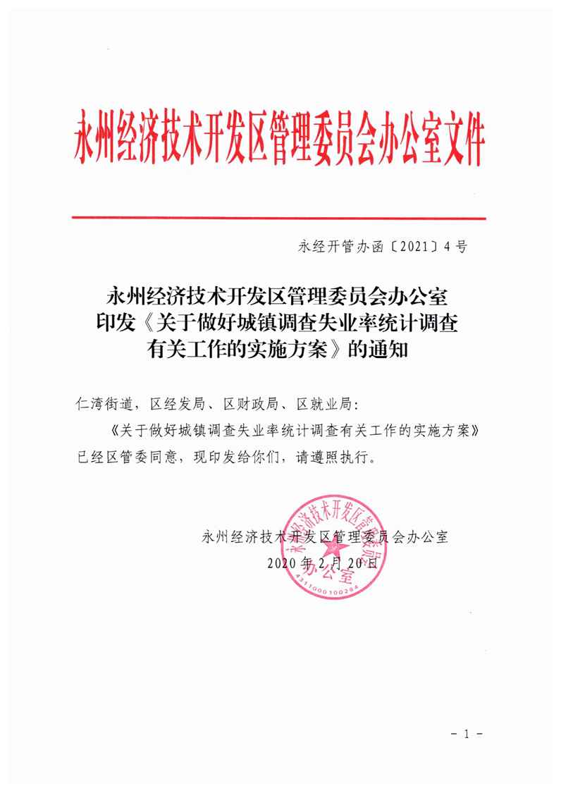 永州经济技术开发区管理委员会办公室印发《关于做好城镇调查失业率统计调查有关工作的实施方案》的通知