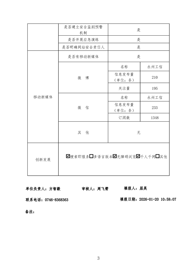 永州市工信局2025年政府网站工作年度报表