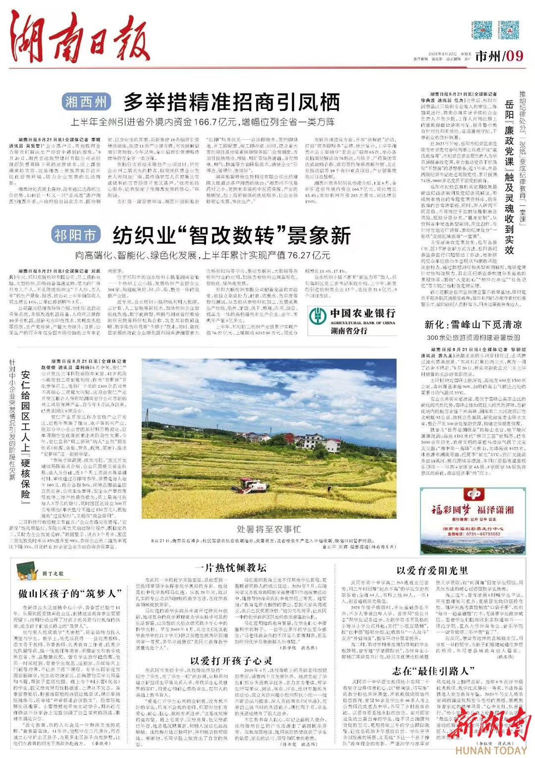 上半年,祁阳轻工纺织产业链累计实现产值76.27亿元、上缴税收6242.86万元,同比分别增长11.4%、17.1%。